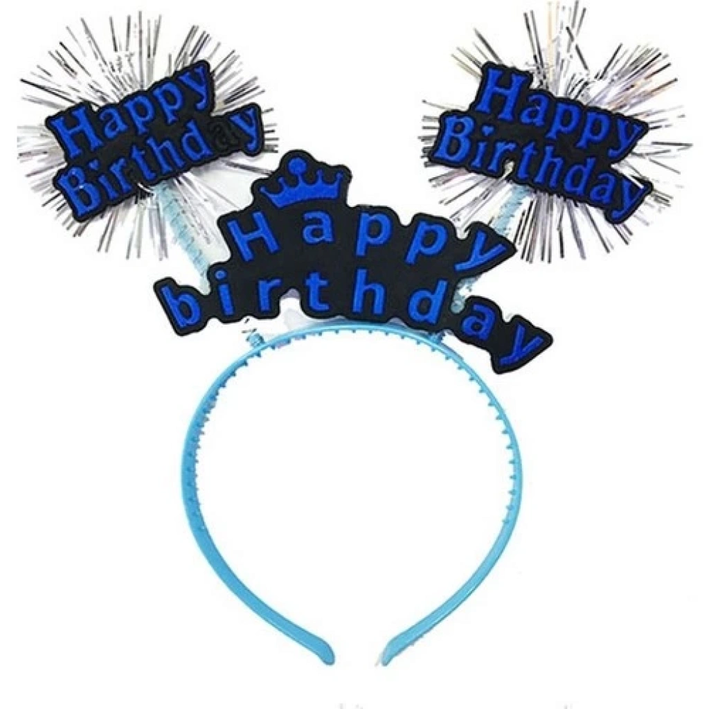 Happy Birthday Yazılı Püsküllü Neon Mavi Renk Doğum Günü Tacı 22X19 cm