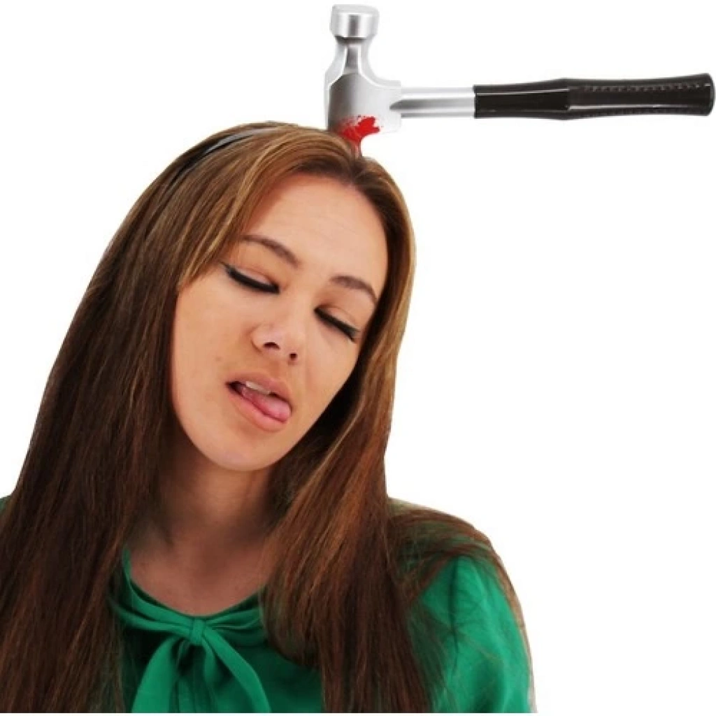 Kafaya Saplanmış Kahverengi Saplı Çekiç Şaka Tacı