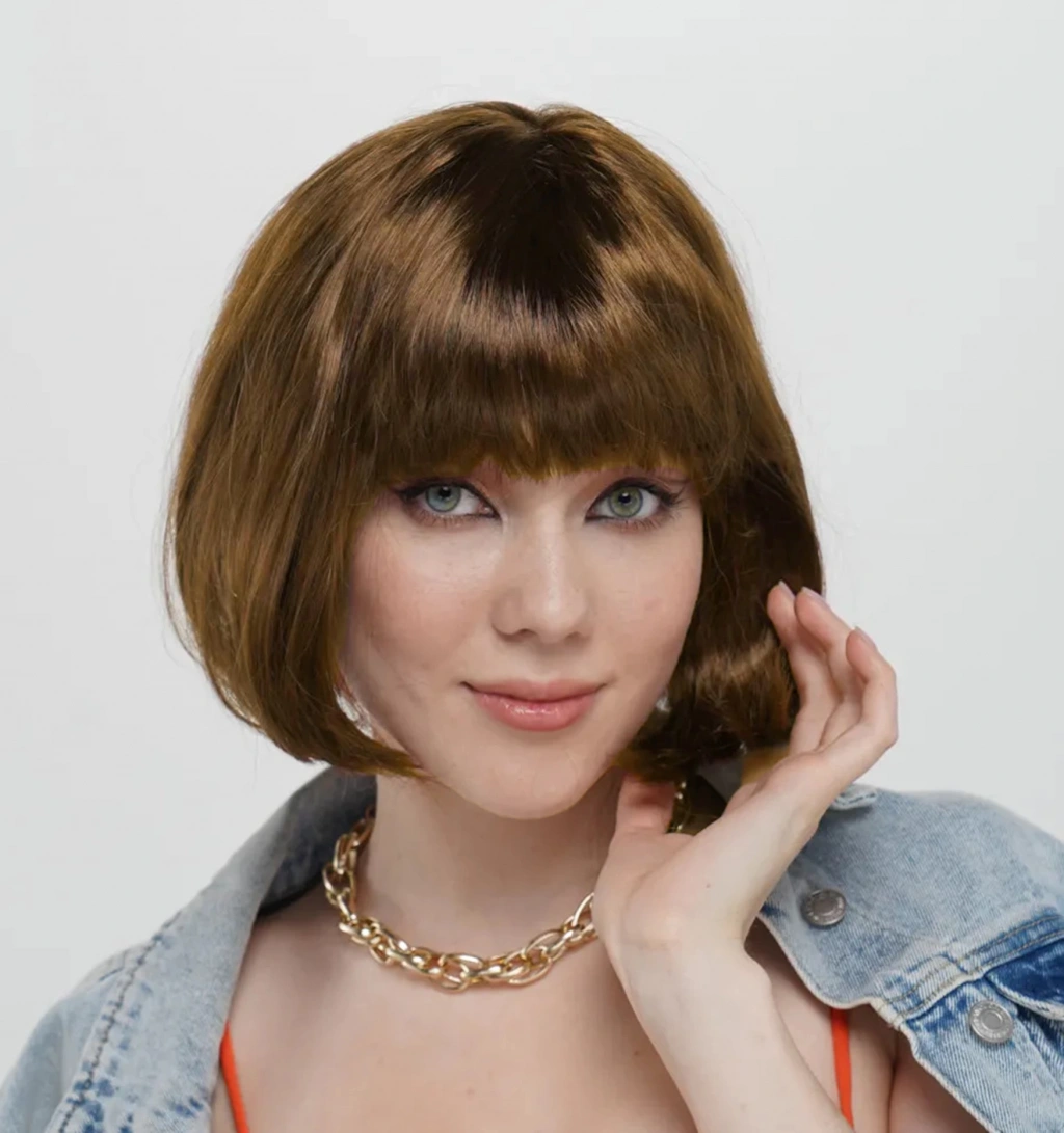 Bu peruk, canlı ve cesur Kahve rengi ile dikkat çekici bir görünüme sahiptir. Düz kesimi ve kısa oluşu ile modern ve şık bir tarz sunar.