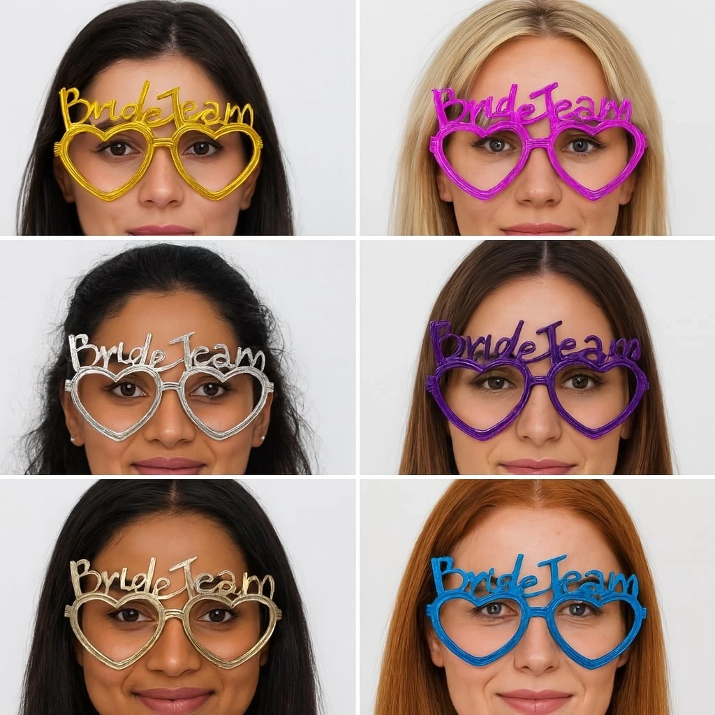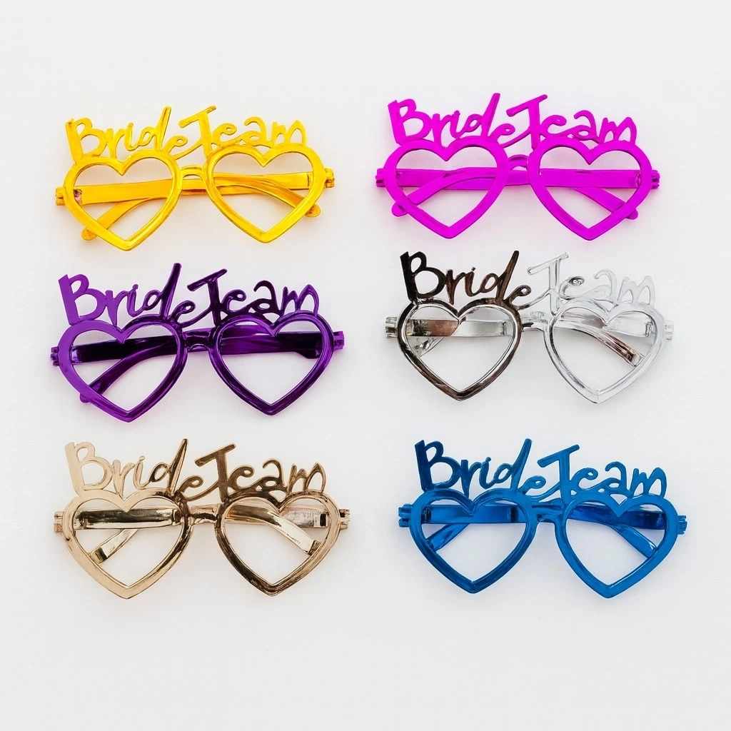 Bekarlığa veda, kına gecesi, düğün partileri veya gelin kutlamaları için mükemmel bir aksesuar! Bride Team yazılı kalpli gözlükler ile arkadaş grubunuzu renklendirin. Parlak ve dikkat çekici 6 farklı renk seçeneğiyle her stile uygun. Hafif ve rahat yapısı sayesinde uzun süreli kullanıma uygundur. Fotoğraflarda harika görünür, partinizin enerjisini artırır!