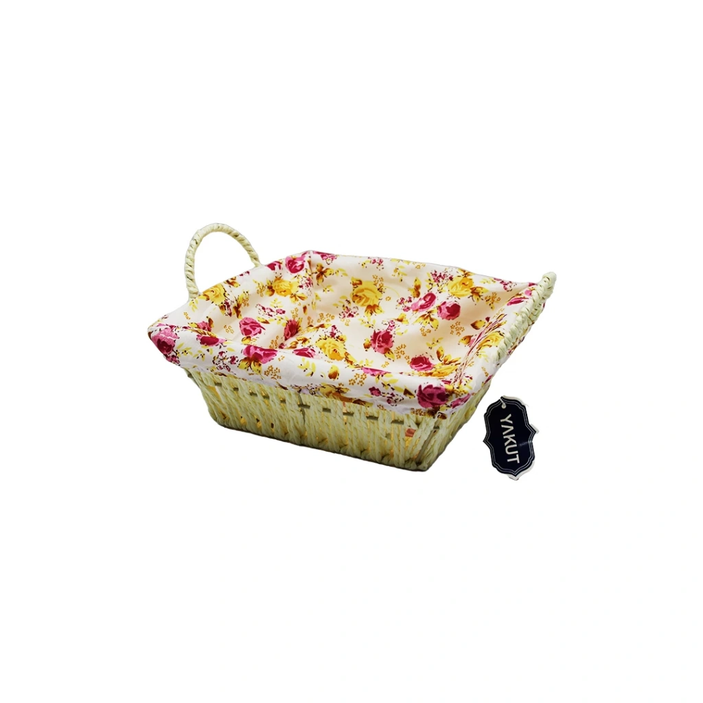 KARE RENKLİ BEZLİ HASIR EKMEK SEPETİ