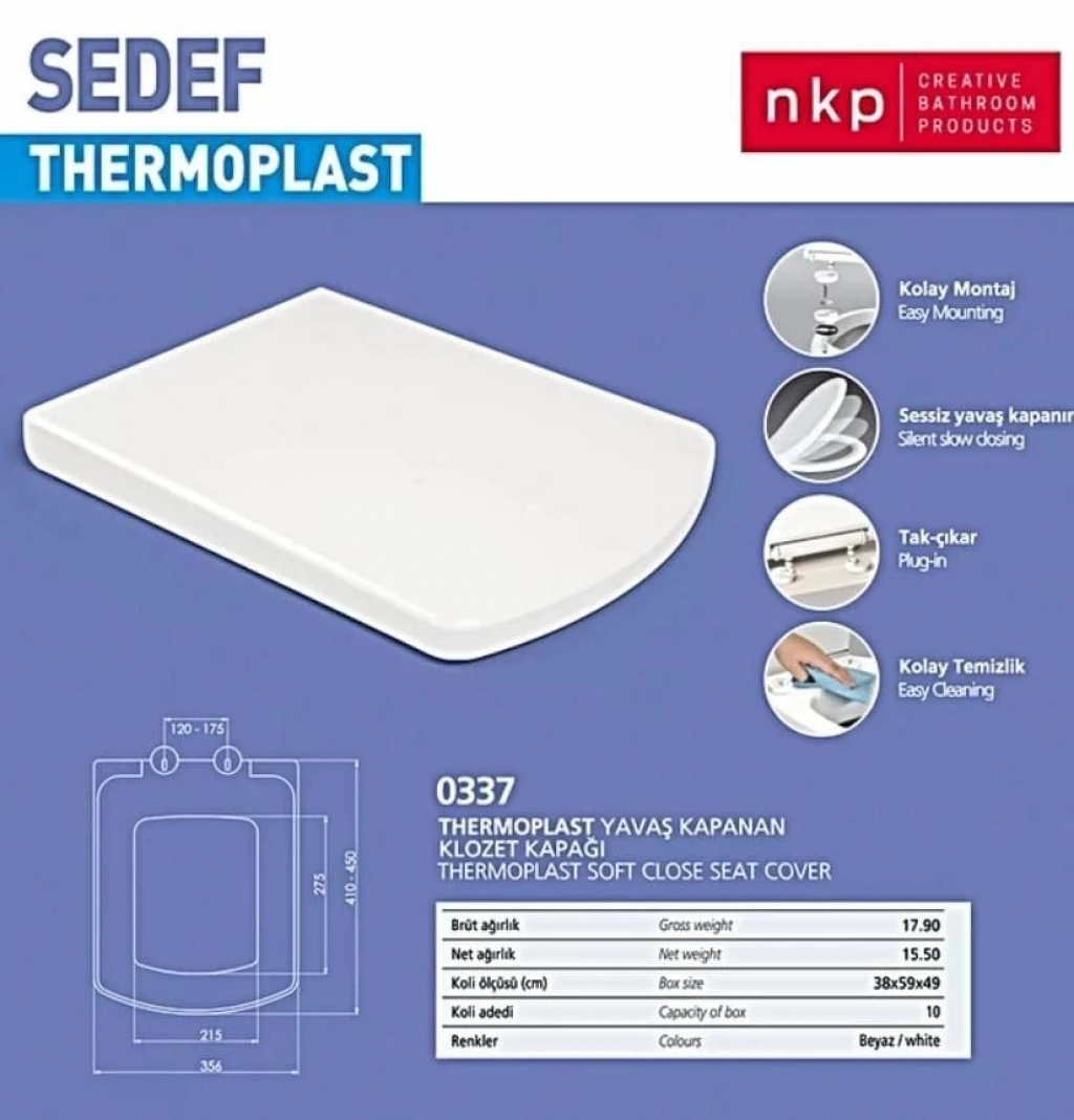 Kare Sedef Klozet Kapağı Beyaz Yavaş Kapanan