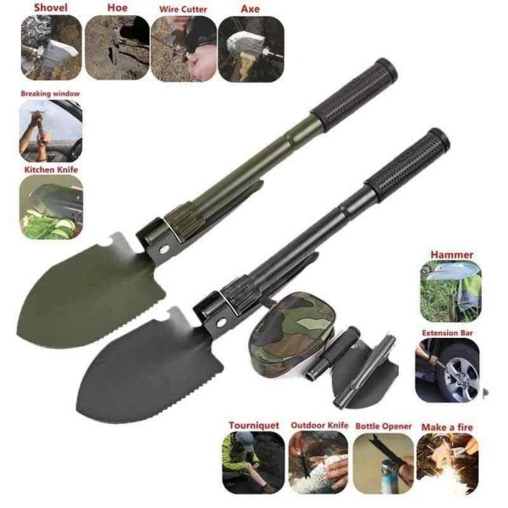 Fonnava Katlanır Portatif Kazma Kürek SetiDoğa tutkunları ve kampçılar için özel olarak tasarlanmış çok foksyonlu katlanır kamp küreği . Cebiniz de de rahatça taşıyabileceğiniz katlanır kürekte ayrıca , kazma ,testere,şişe açacağı ve pusula da mevcuttur. Portatif kürek i yolculuklarda mutlaka arabanızda bulundurun. Ürün Ölçüleri:Kurulu Kürek uzunluğu 41,5 cmKurulu kazma uzunluğu 39 cmTutma sapı çapı 2,5 cmTaşıma çantası ölçüleri 16cm*11cm*4cmPaket İçeriği:Bir adet katlanır kazma kürek setiBir adet taşıma çantası