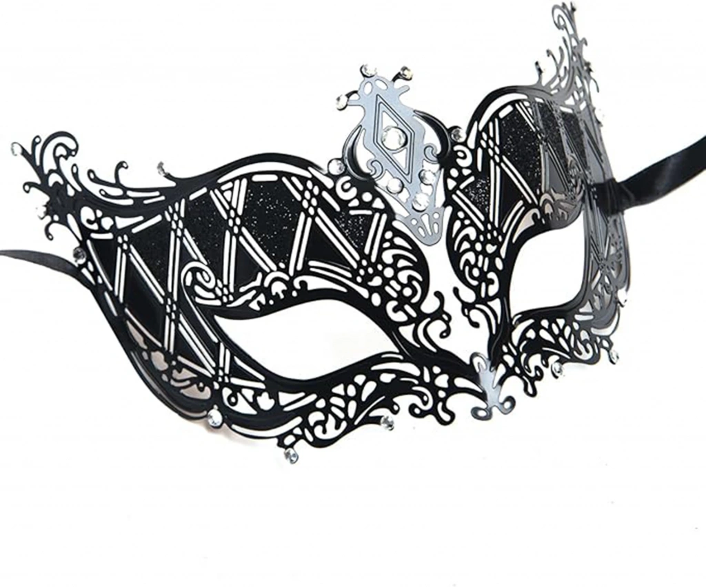 Siyahın zarifliği, gümüşün ışıltısı ve kristallerin büyüsüyle bir araya gelen bu metal maske, balo ve özel gecelerinizde göz kamaştıracaksınız. Lüks ve sofistike tasarımıyla öne çıkan bu maske, gizemli ve çekici bir görünüm yaratmanıza yardımcı olacak.