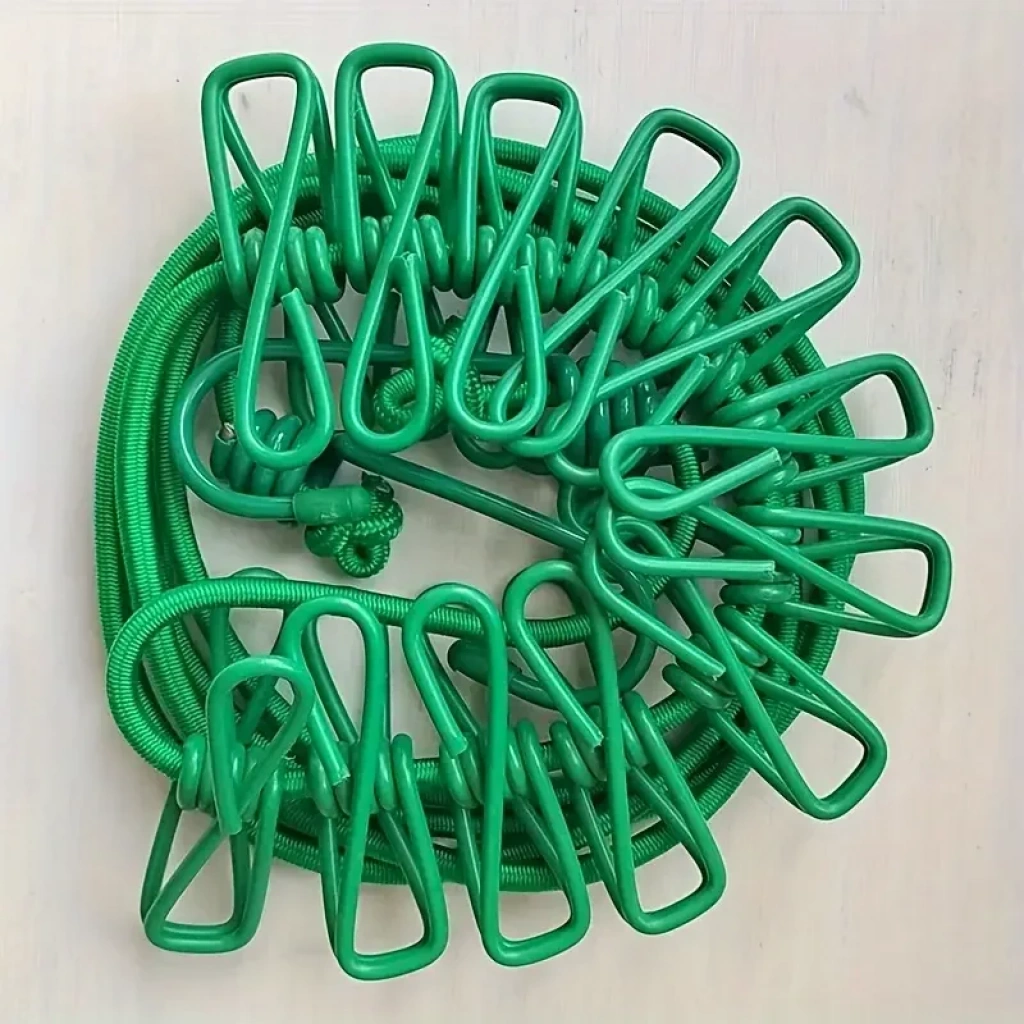 Taşınabilir Seyahat Çamaşır İpi 12 Mandallı Klipsli Lastikli Çamaşır Mandalları (5148)