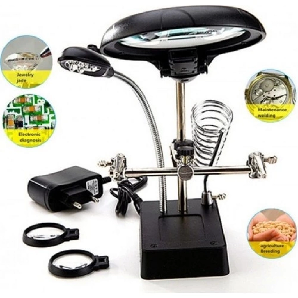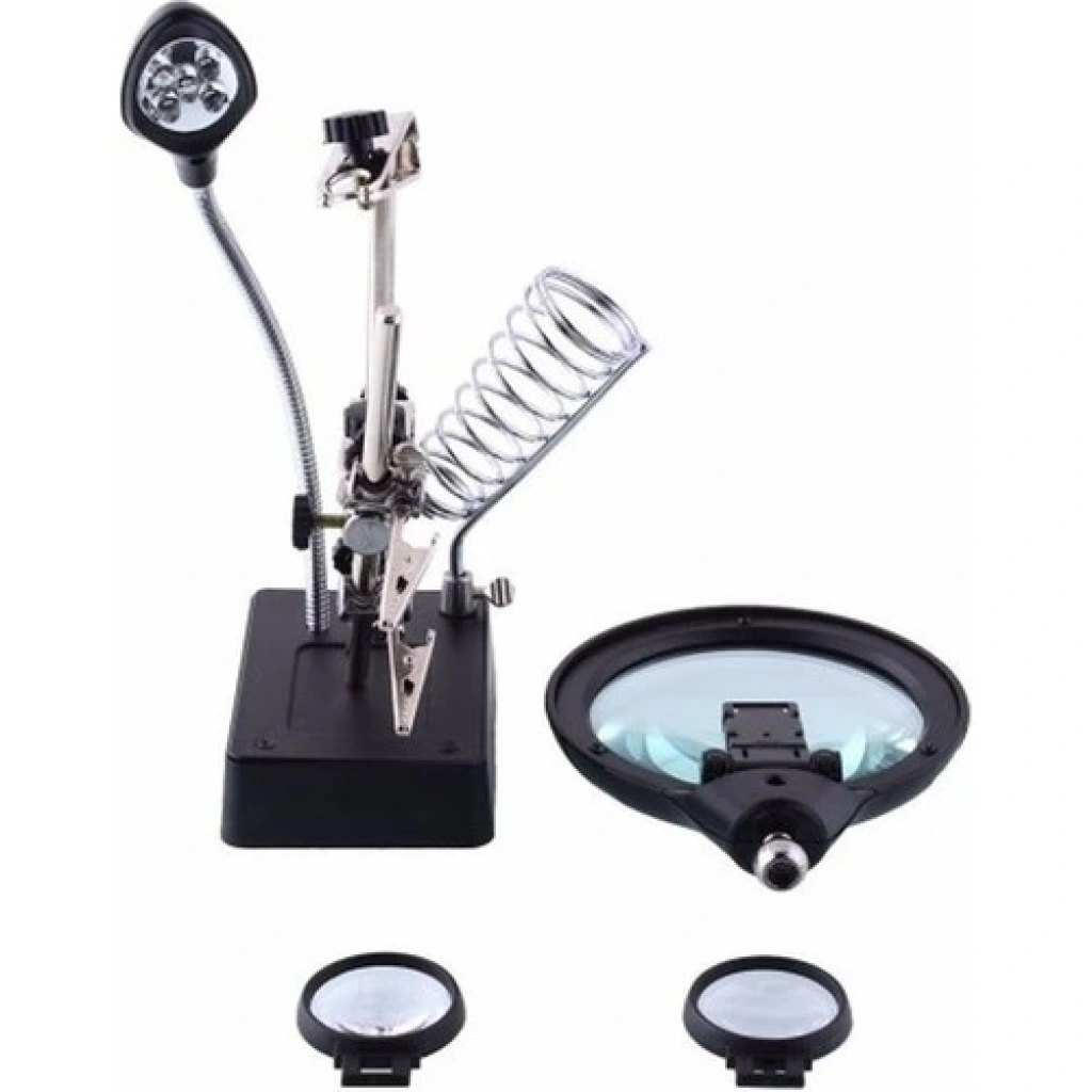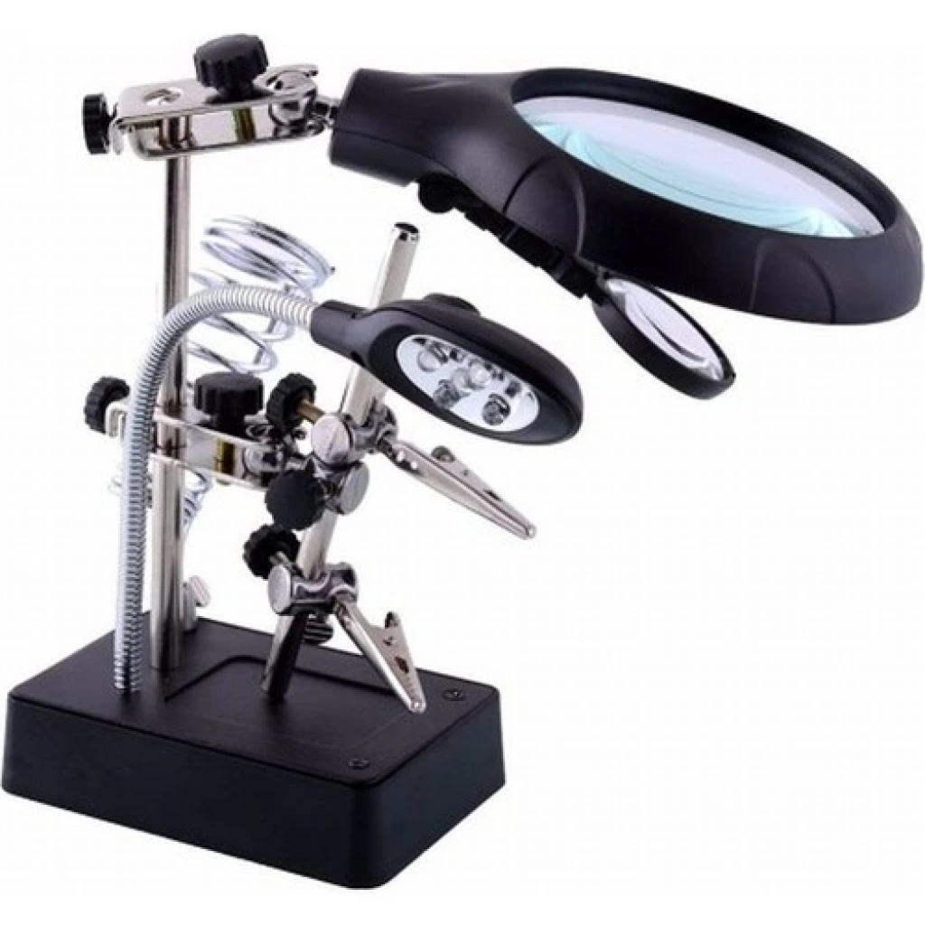 Masa Üstü Mandallı 2.5X90 mm 7.5X34 mm Mercekli Adaptörlu Işıklı Büyüteç