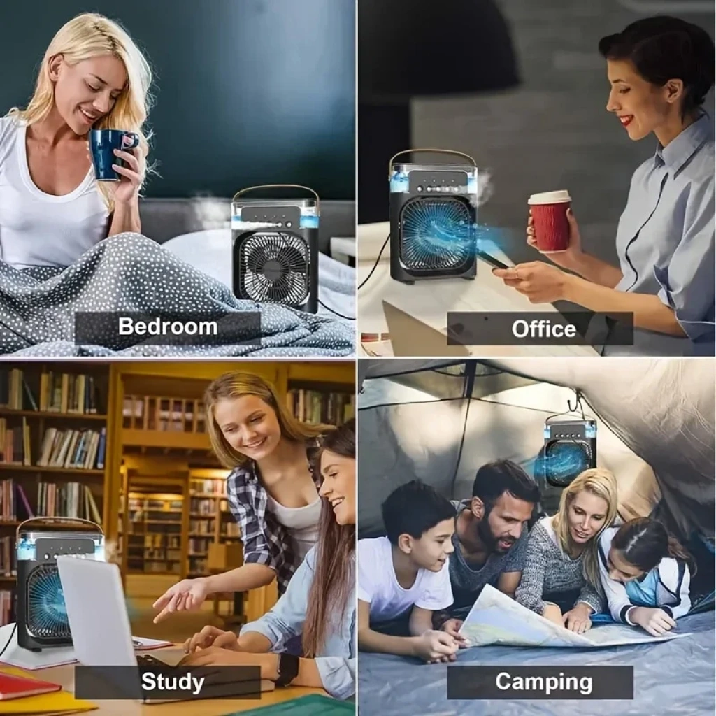 3İN1 HAVA NEMLENDİRME - FAN - GECE LAMBASI MASA ÜSTÜ BUZLU VANTİLATÖR 360 DERECE USB ŞARJ 3KADEME HIZ (5148)