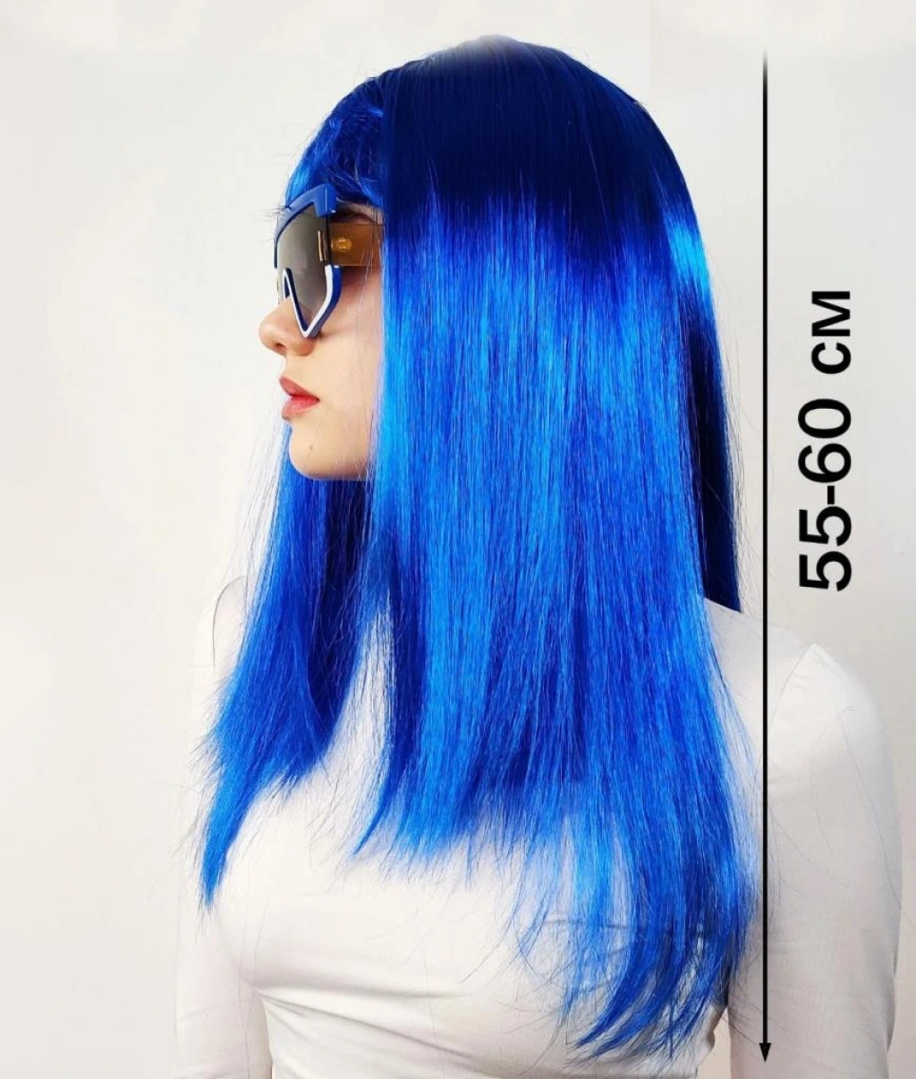 Mavi Renk Uzun Parti Peruğu