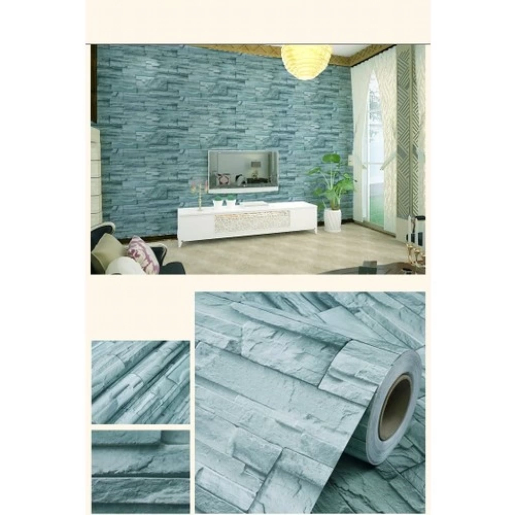 Mavi Tuğla Taş Desenli Kendinden Yapışkanlı 3D Duvar Raf Kapı Kaplama Kağıdı 3 Metre 60 cm