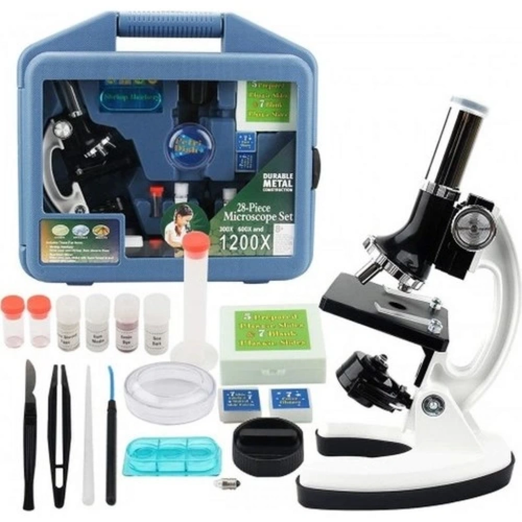 Mikroskop Taşınabilir Set 28 Parça Eğitim Mikroskop Kiti 300X 600X ve 1200X Çocuklara