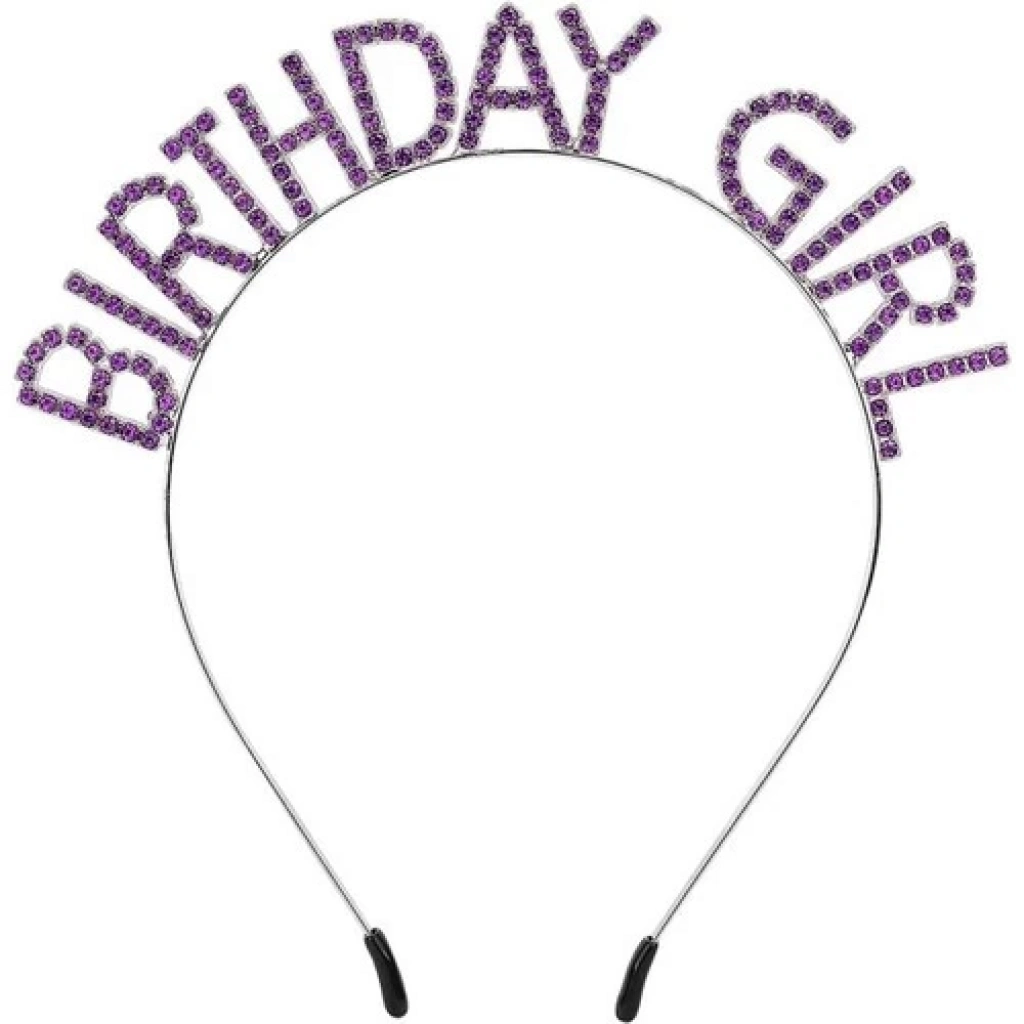 Mor Renk Kristal Taşlı Parlak Birthday Girl Yazılı Taç 16X17 cm