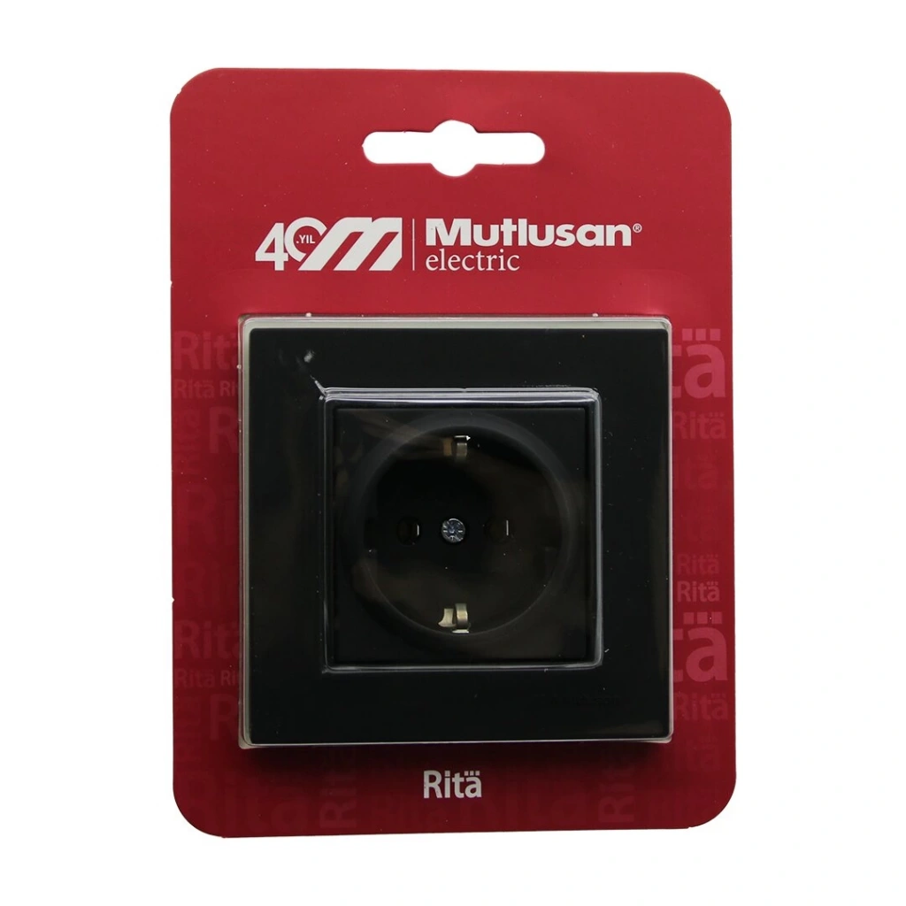 MUTLUSAN RİTA-2220 600 0284B BLİSTERLİ - KARTLI SİYAH - TOPRAKLI PRİZ ÇERÇEVELİ (5148)