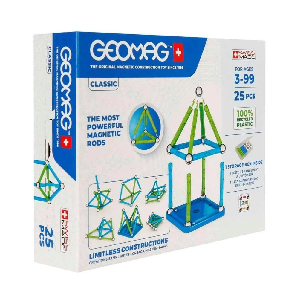 Güçlü manyetik çubuklar ve bilyeler ile yaratıcılığına sınır çizmeden dilediğin şekli oluşturmaya ne dersin? Üstelik her seferinde farklı şekiller oluşturarak eğlenceyi katlayabilirsin. Manyetik çubukların güçlü mıknatıslar ile nasıl bir sanat eserine dönüştüğünü izleyerek keyifli vakit geçirebilirsin. Geomag Classic Manyetik Zeka Oyunu 25 Parça, oynaması hem çok eğlenceli de kolay bir yapım setidir. 12 adet manyetik çubuğu dilediğin şekli oluşturacak şekilde manyetik bilyelere bağlamalısın. Şekline göre çubuk ekleyip çıkarabilirsin. Mavi kare tabanın üzerinde yükselen 3D manyetik yapılar oluştur. Dikkat çekici tasarımlarını sergilemek için de kullanabilirsin. Çocukların; dikkatinin, ince motor becerilerinin ve hayal gücünün gelişmesine katkı sunar. Çocukların yaratıcı oyunlar oynamasını sağlayarak onların merakını destekler. Kutu içerisinde; 12 adet manyetik çubuk, 12 adet manyetik bilye ve kare taban bulunmaktadır.