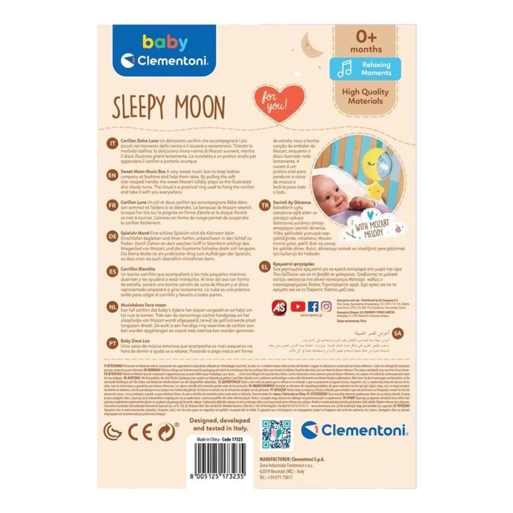 Sevimli bir ay şeklindeki müzik kutusu ve yumuşak yıldız, keyifli ve şefkat dolu tatlı rüyalar görmesi için bebeğinize yatağında eşlik eder.