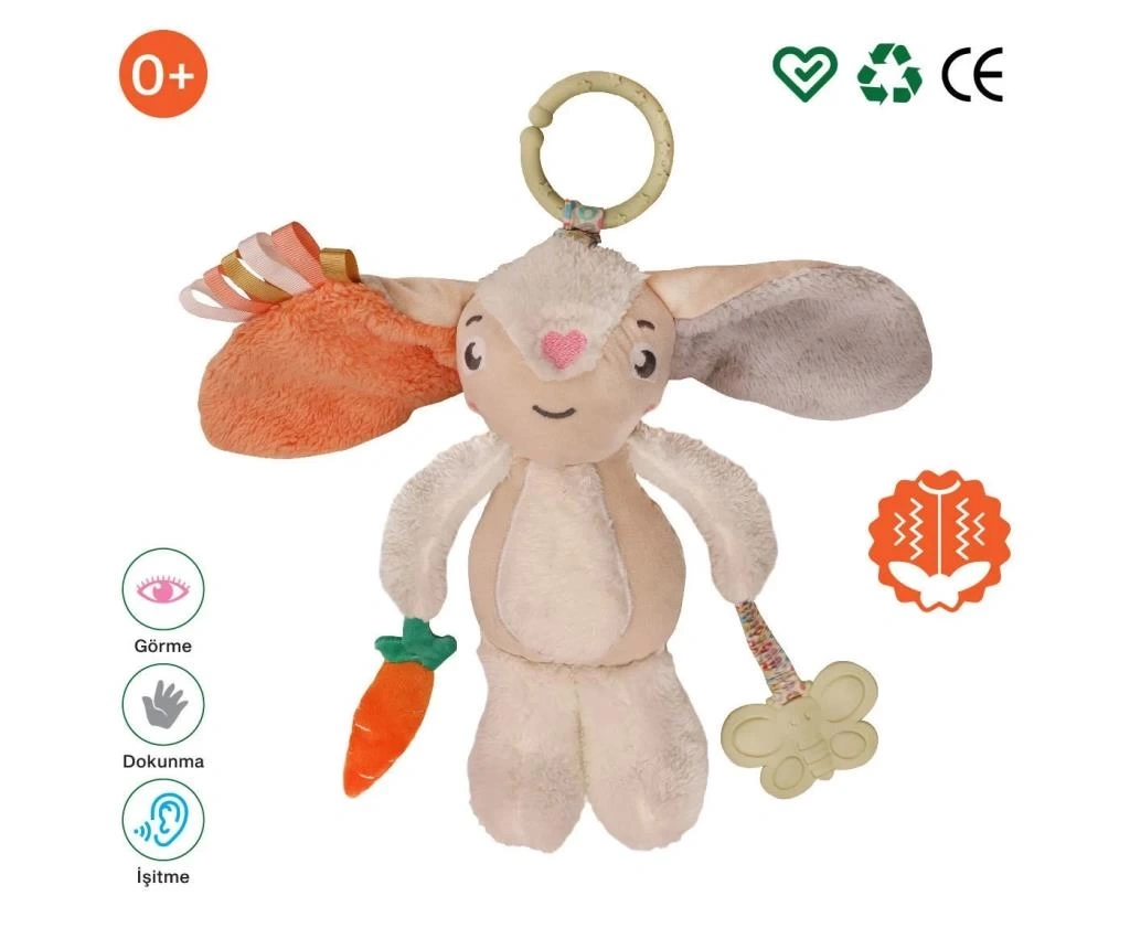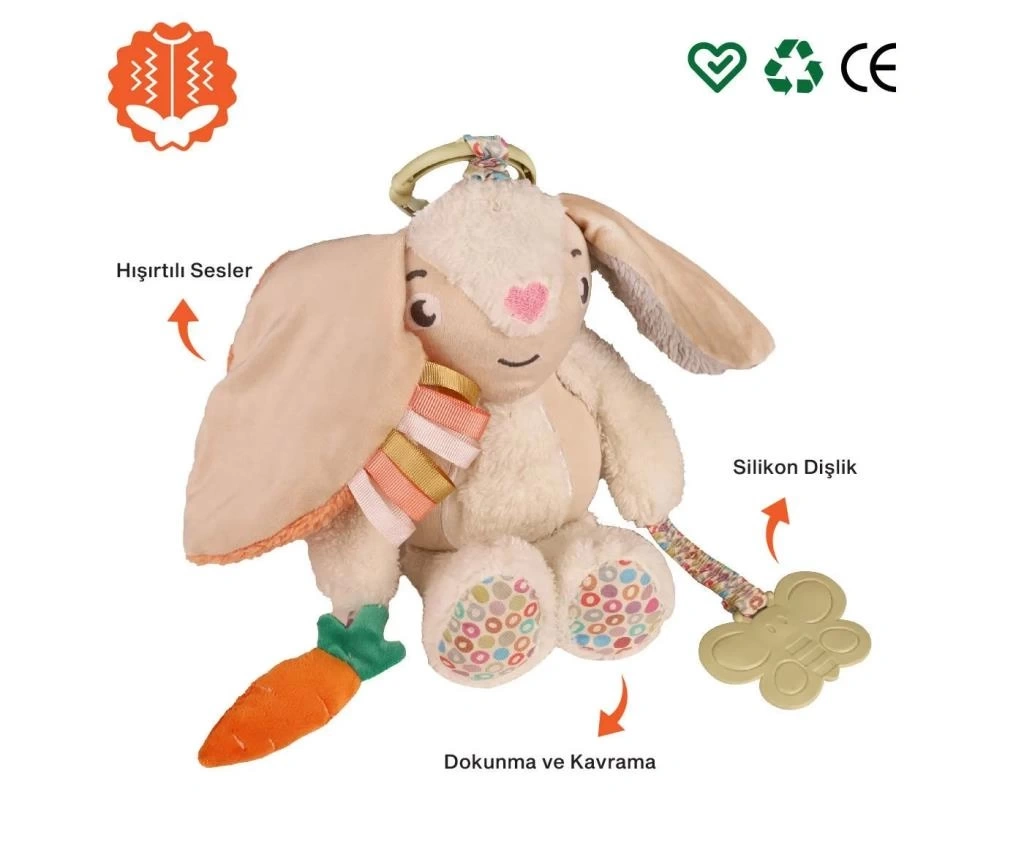 Sevimli peluş tavşan; bebeklerin her anında keyifli vakit geçirerek öğrenmesi için yol arkadaşı!