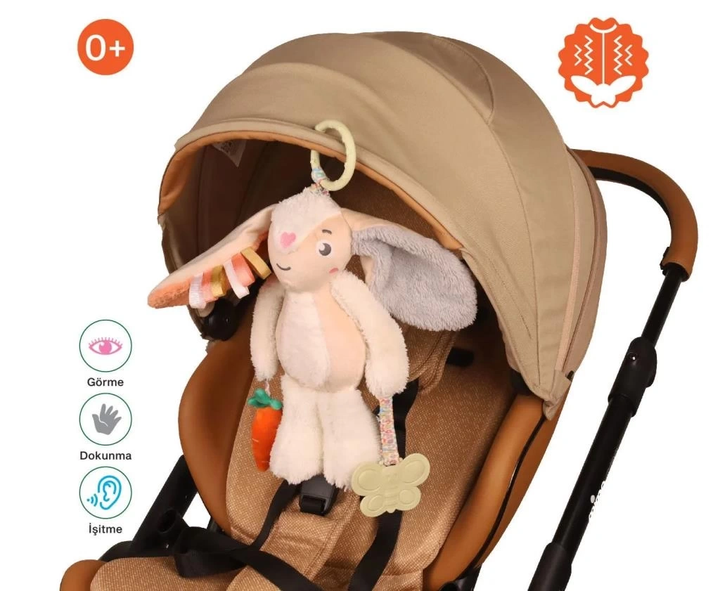 Üzerindeki kanca sayesinde bebek arabası, oto koltuğu, mama sandalyesi ve beşik gibi birçok yere kolayca asılır ve her an bebeğinize yol arkadaşı olur.