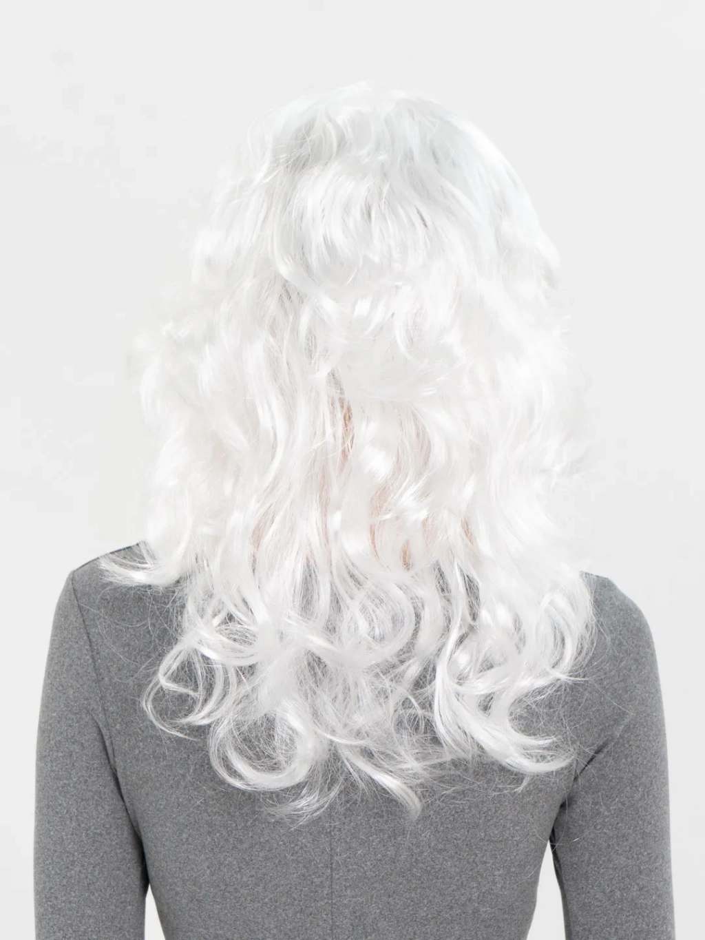 Beyaz Renk Dalgalı Uzun Parti Peruğu