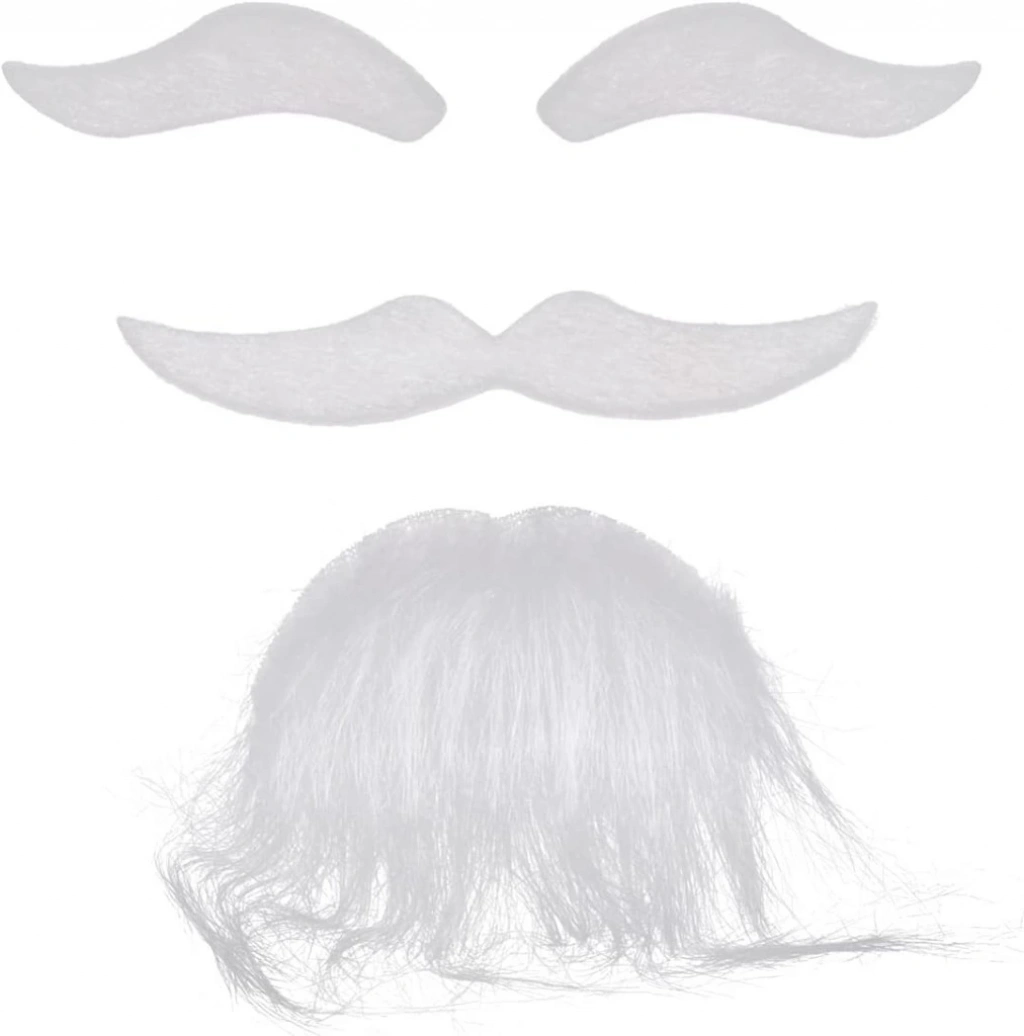 Beyaz Renk Kendinden Yapışkanlı Takma Sakal Bıyık ve Kaş Seti