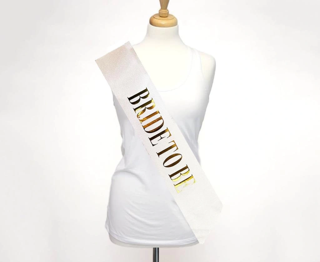 Beyaz Üzeri Altın Büyük Bride To Be Yazılı Simli Işıltılı Kuşak Kemer 10x80 cm