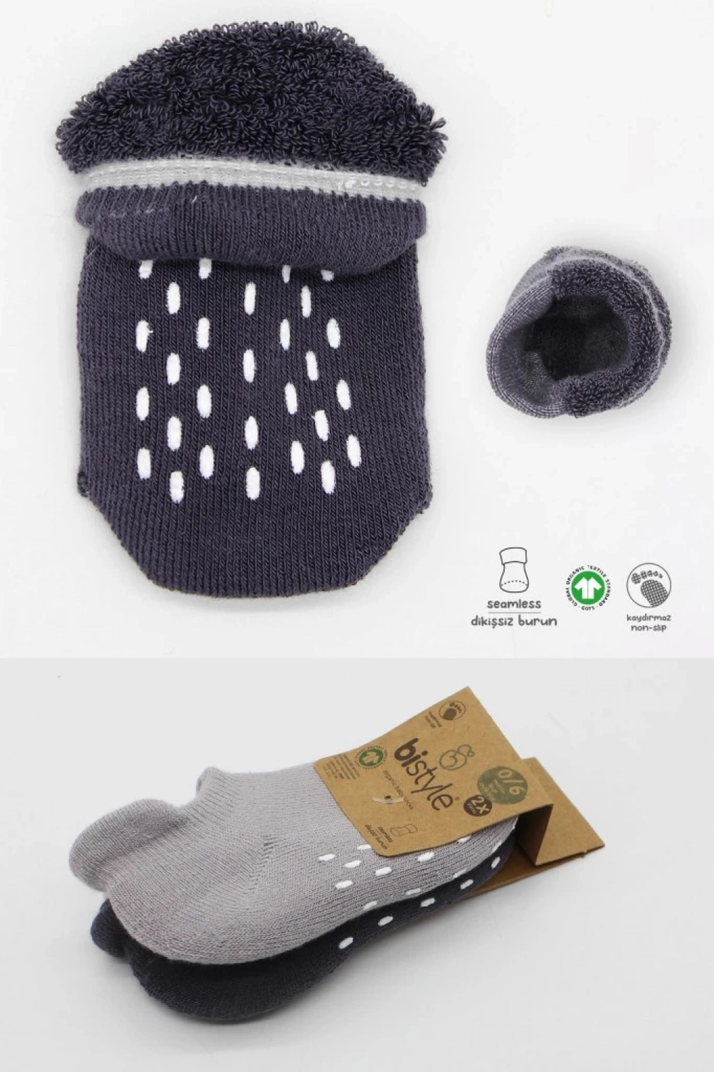 Bistyle 2'Li Altı Havlu Sneakers Kaymaz Çorap 20501 Gri-Antrasit