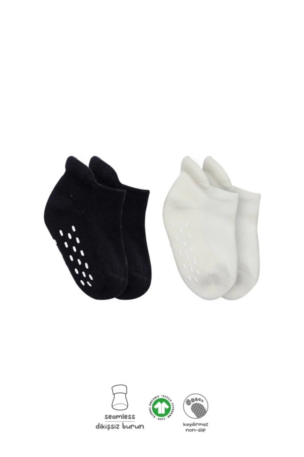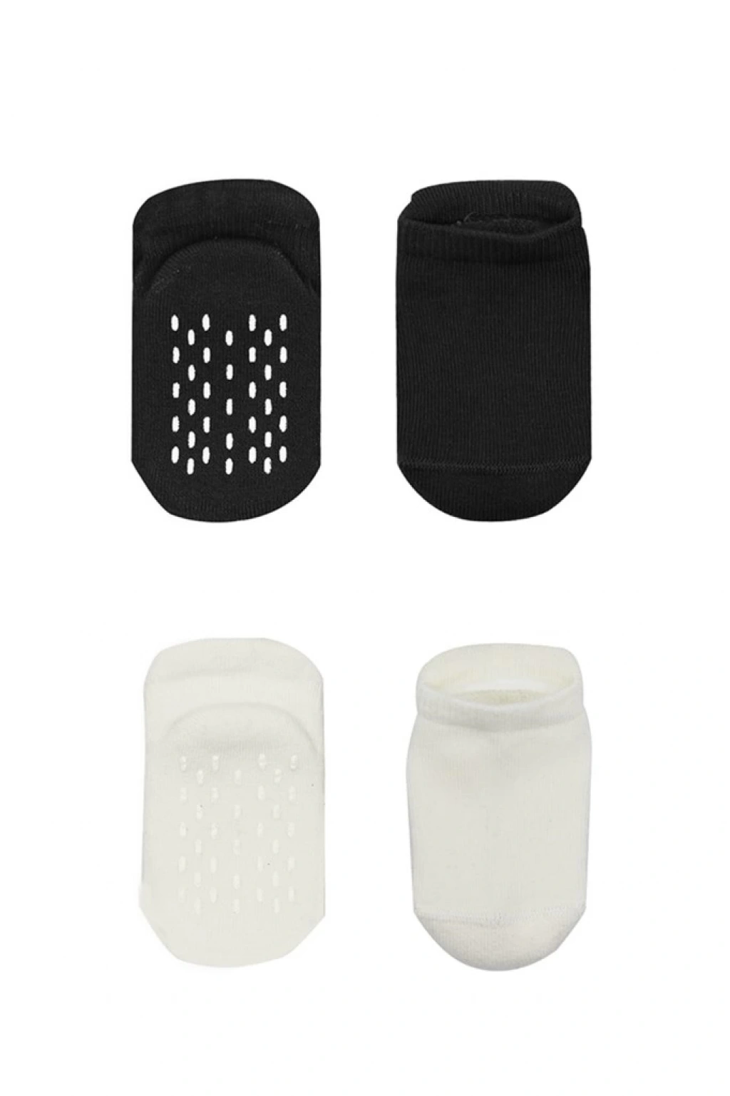 Bistyle 2'Li Altı Havlu Sneakers Kaymaz Çorap 20501 Siyah Ekru