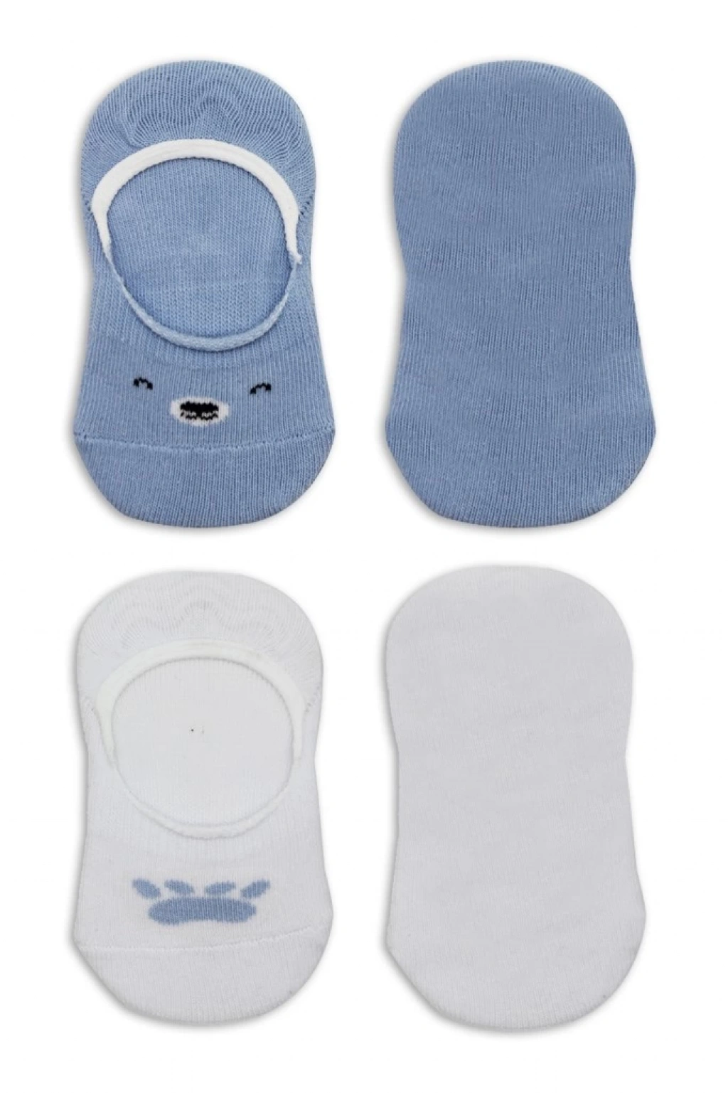 Bistyle 2'Li Babet Cute Face Penye Çorap BS30103 Mavi-Beyaz