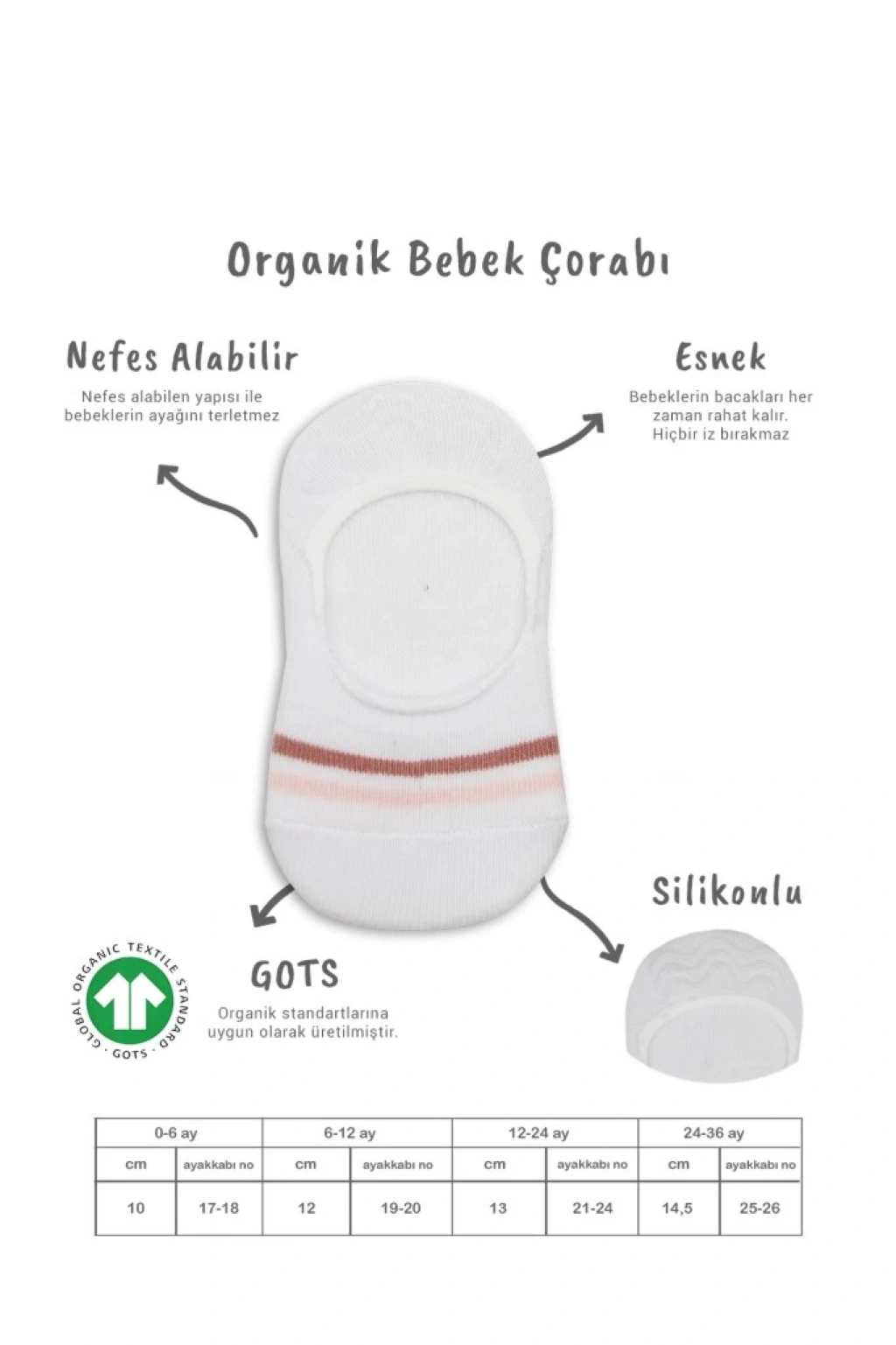 Bistyle 2'Li Penye Babet Silikon Çemberli Çorap 30102 Pudra Beyaz
