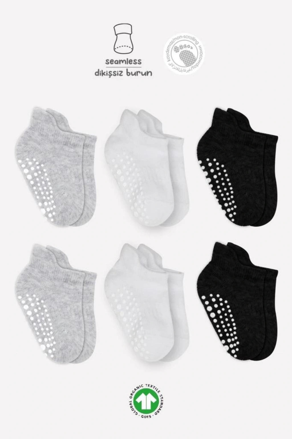 Bistil Bistyle Organik Kız Erkek Bebek Dikişsiz Basic Kaymaz Altı Taban Kaymaz Kaydırmaz Sneakers Patik Çorap Renkli Kokulu Pamuklu Yumuşak Antialerjik