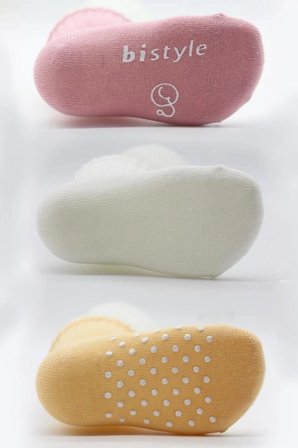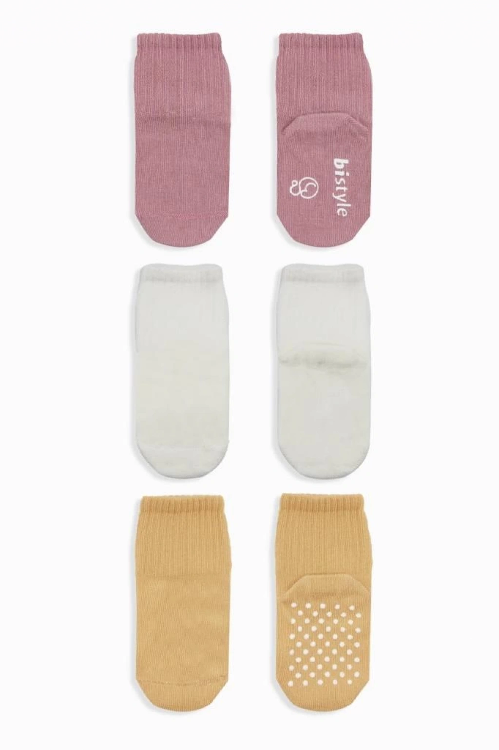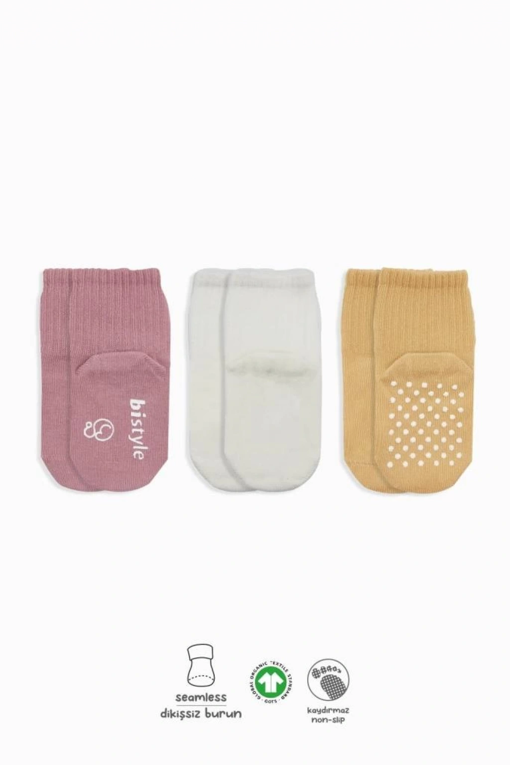 Bistyle Basic Kaymaz Penye Soket Çorap 3'Lü BS10107 Pudra Ekru Somon