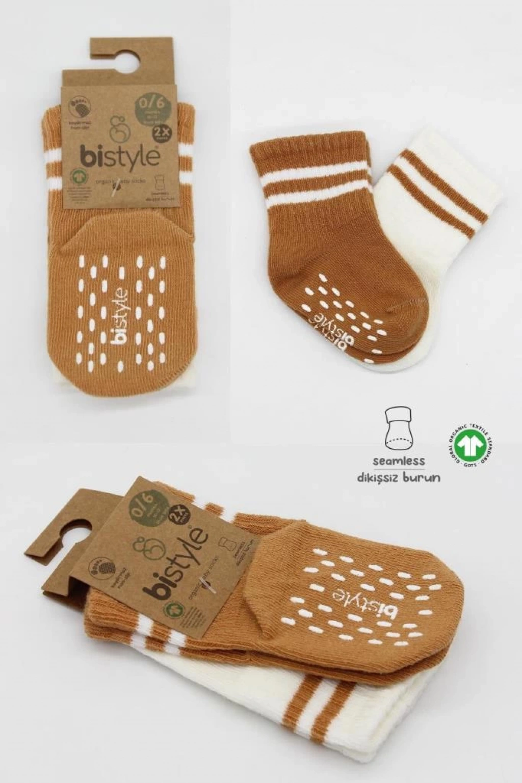 Paket İçeriği: Bistil Bistyle Organik Dikişsiz 2li Çemberli Kaymaz Penye Soket Bebek Çorap