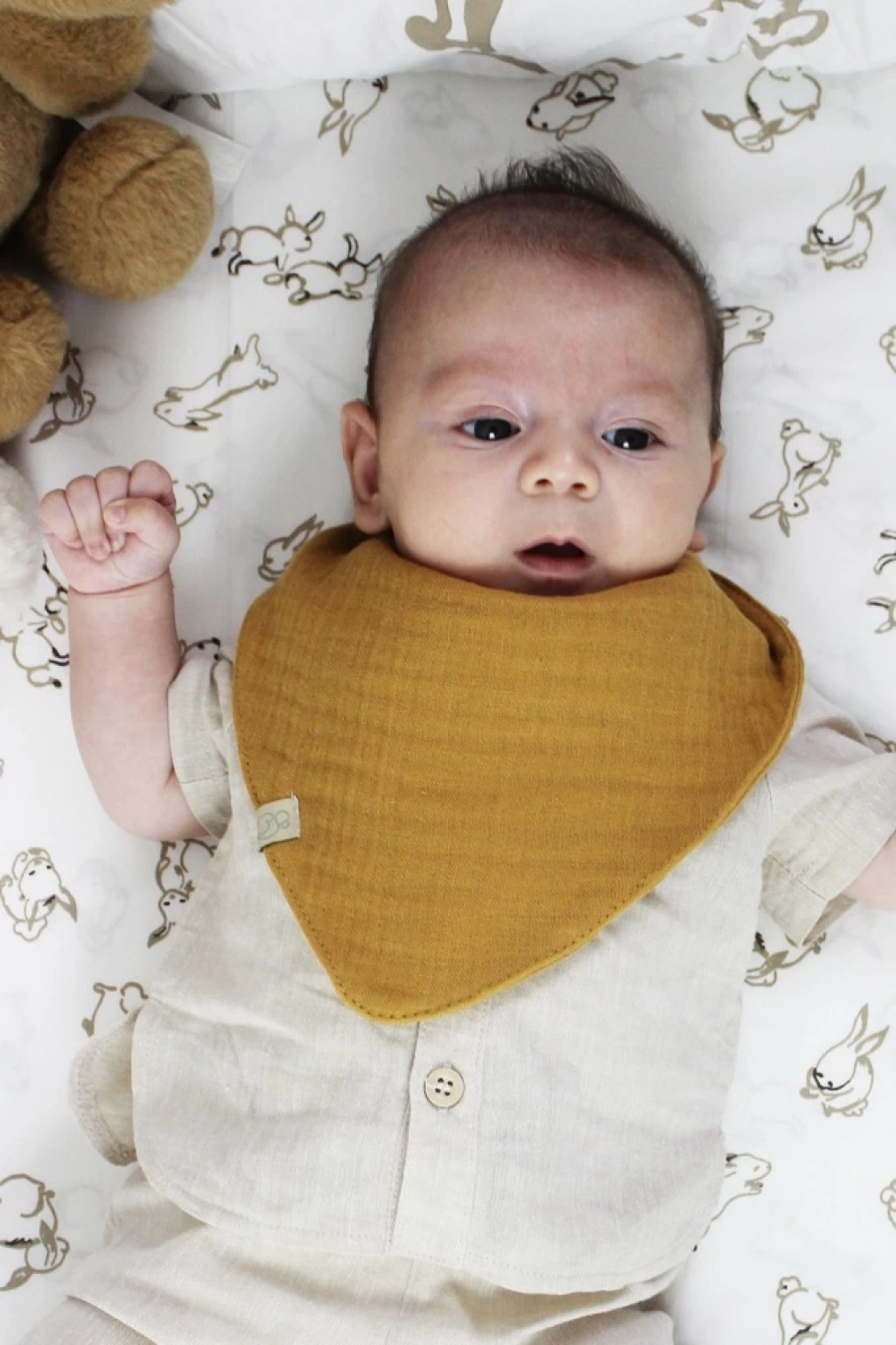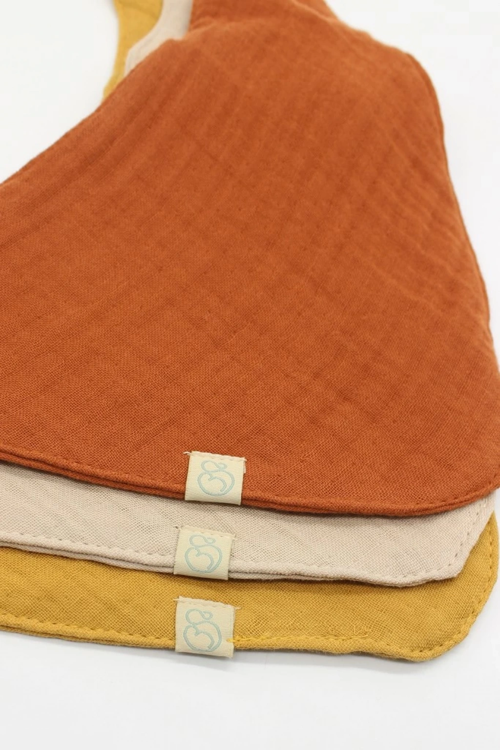 3'lü müslin bebek önlük, bebeklerinizin hassas cildine teması için uygundur.
