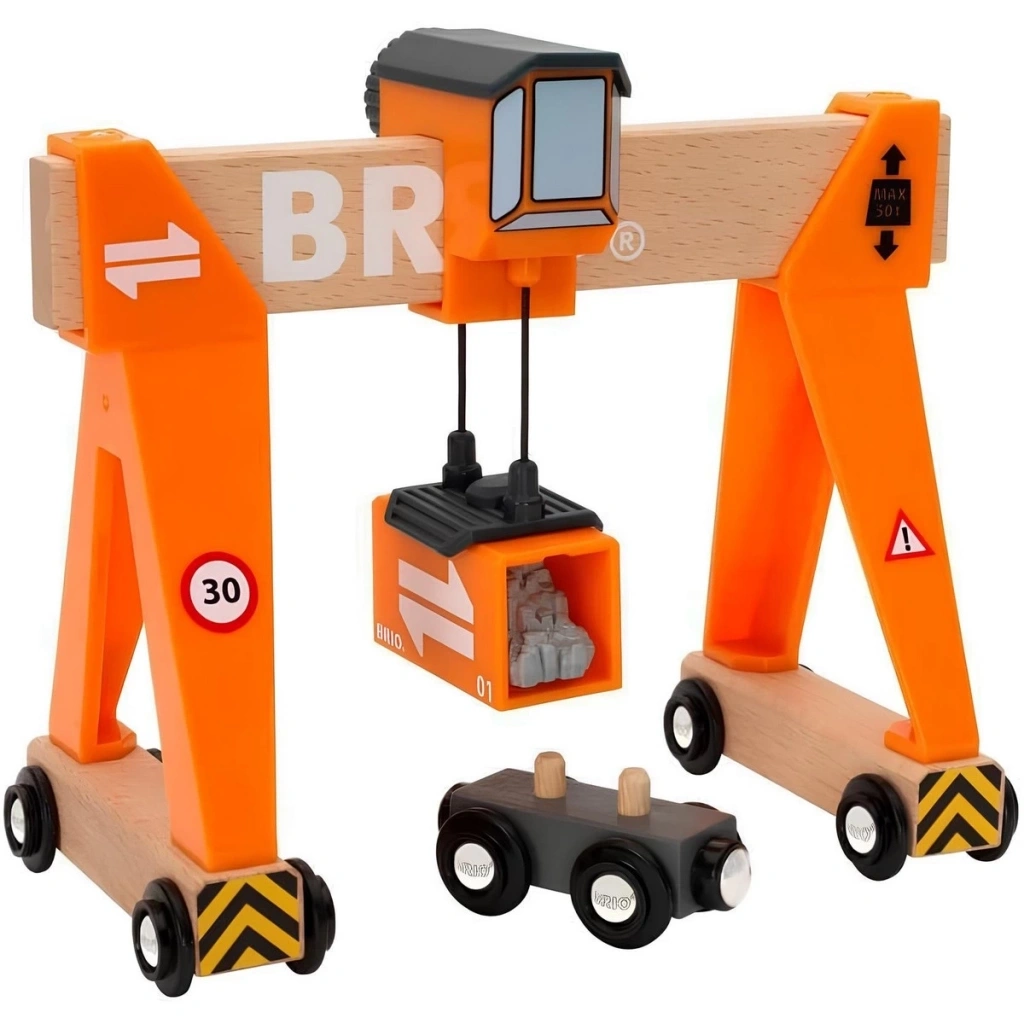 Oyuncak portal vincin tekerlekleri vardır ve tüm Brio tren yolları ile uyumludur.