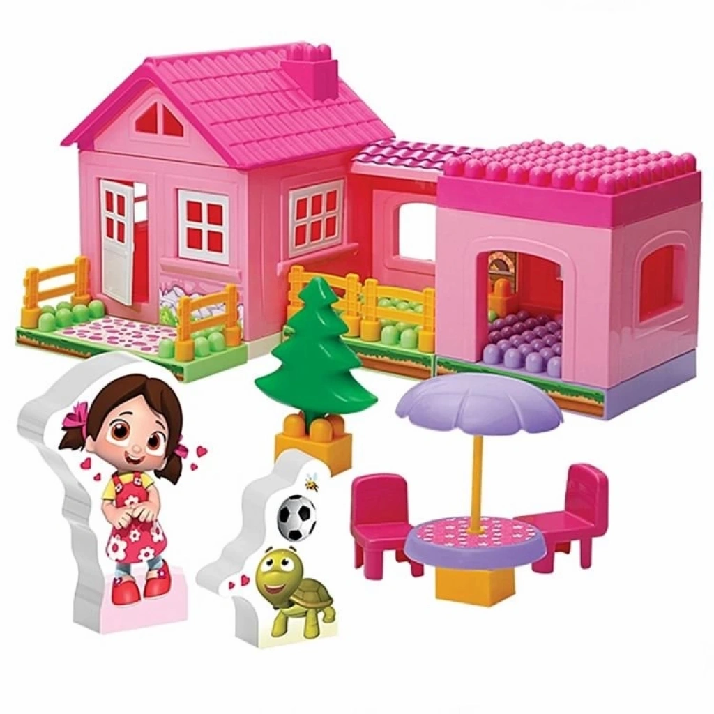 Çatısı, pencereleri, balkonu, masa ve sandalyesi ile birlikte gelen Niloya Oyuncak Ev Lego Setini