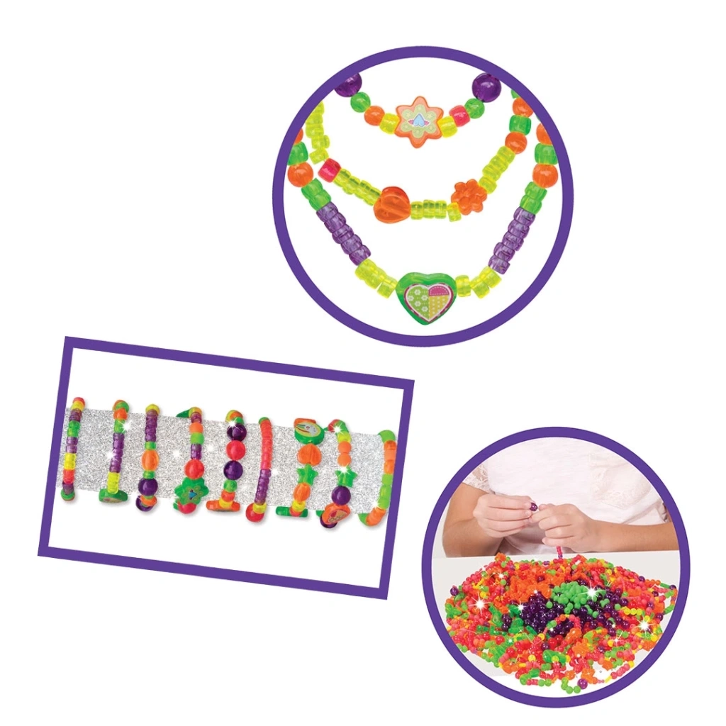 Renk renk boncuklarla, kendi takını tasarla! Kolyeni ve bilekliğini oluştur! Küçük parçalar, 3 yaş altı çocuklar için uygun değildir. Sağlık testlerinden geçmiştir.