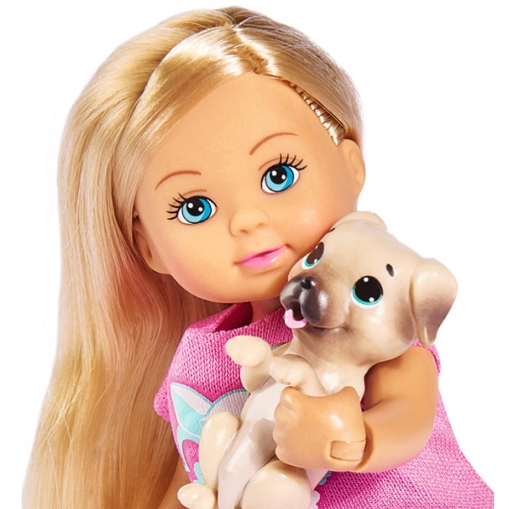 Pembe bluz, pantolon, ayakkabı ve kaskını giymiş uzun, sarı saçlı Evi Love bebek çok sevimli!