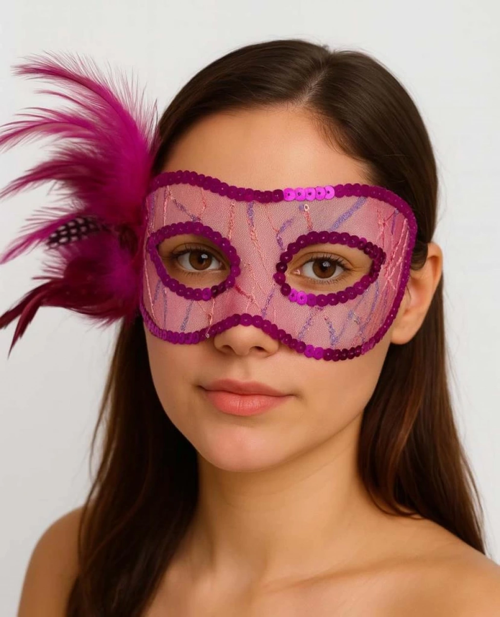 Fuşya Renk Yandan Tüylü Pul Payet İşlemeli Parti Maskesini Neden Seçmelisiniz?