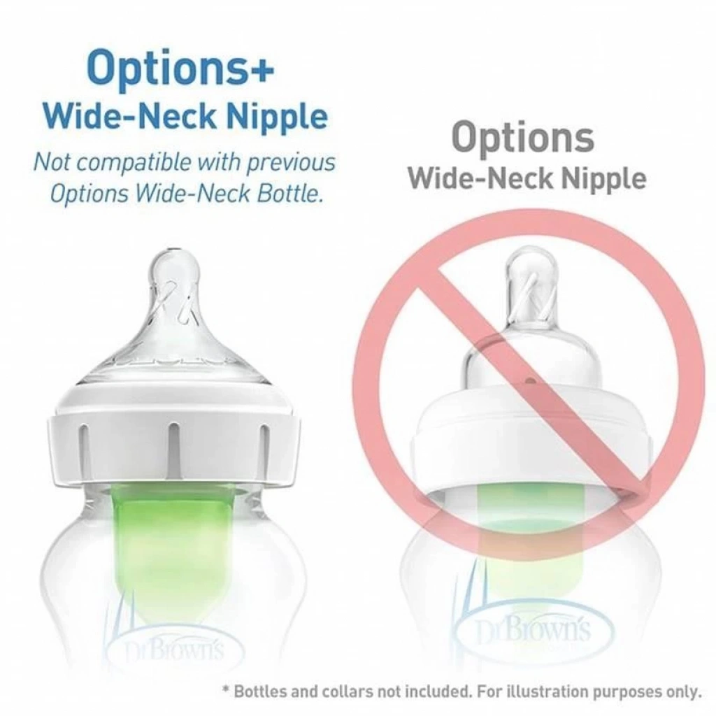 Geniş Ağız Biberon Emzikleri sadece Options+ Geniş Ağız biberonlar ile uyumludur.