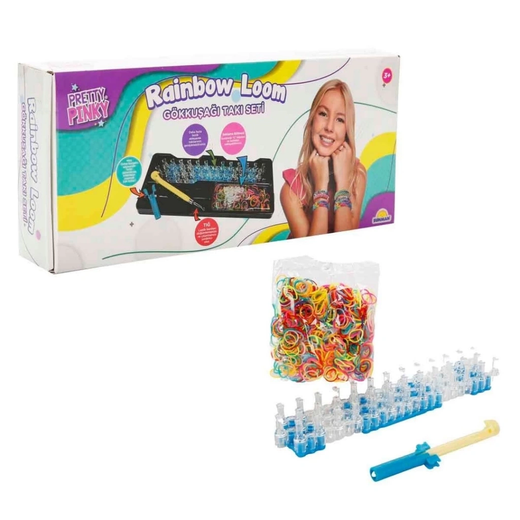 Bir kutunun içinde hem eğlence var hem de bolca yaratıcılık! Rengarenk lastikler, örme aparatı ve tığ ile Gökkuşağı Takı
