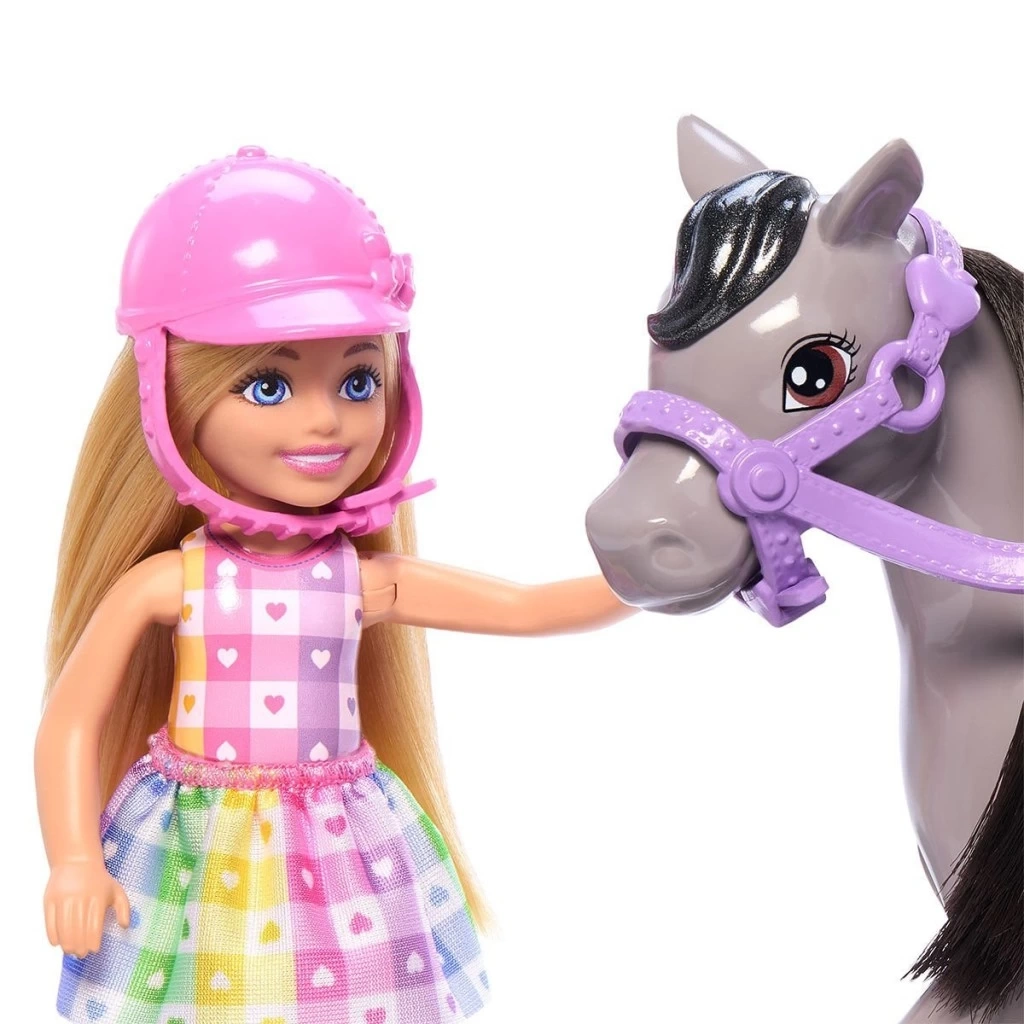 Chelsea'nin pembe kaskını takın ve şirin pembe eyerin üstüne oturtun. Dizginleri tutmasına yardımcı olduktan sonra yolculuğa çıkın.