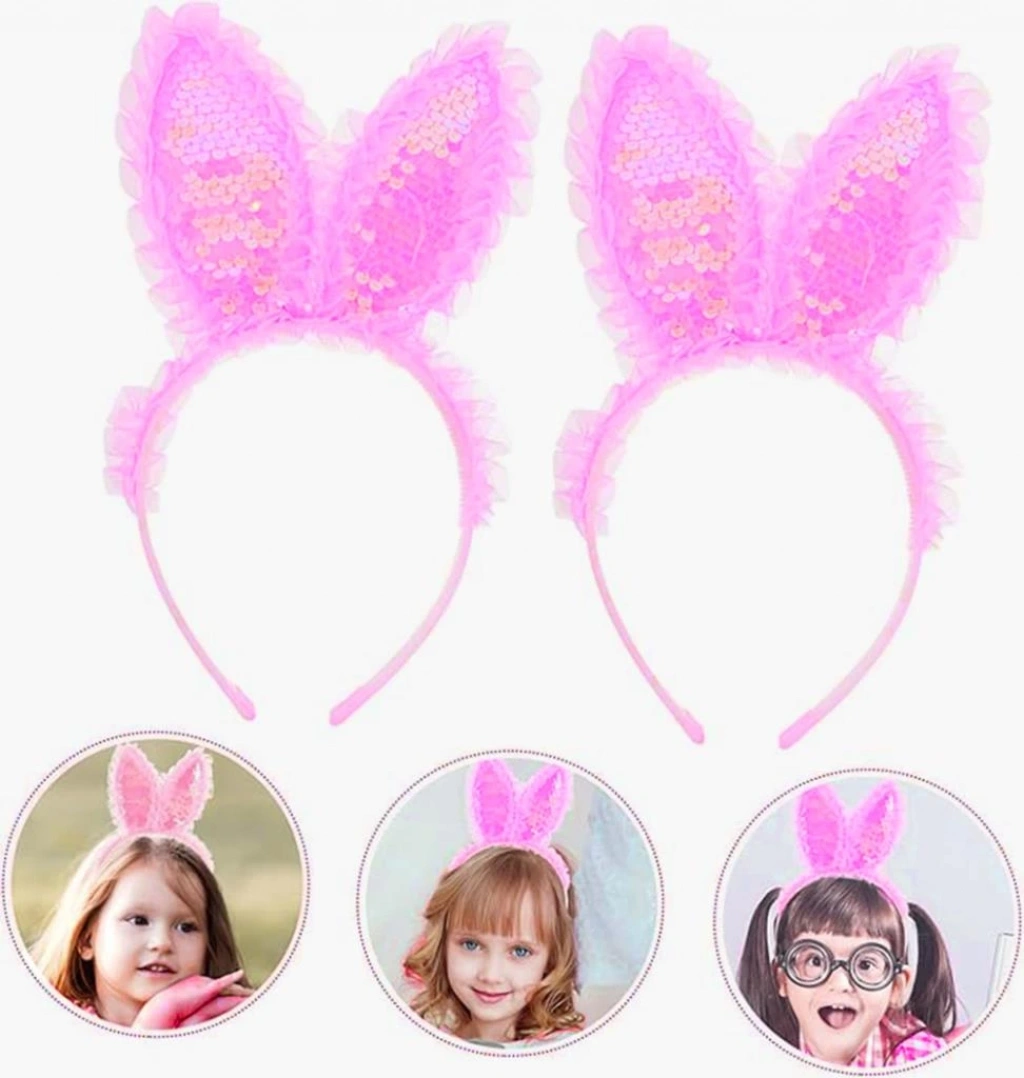 Kenarları Dantelli Fuşya Pullu Payetli Led Işıklı Tavşan Kulak Taç ile: