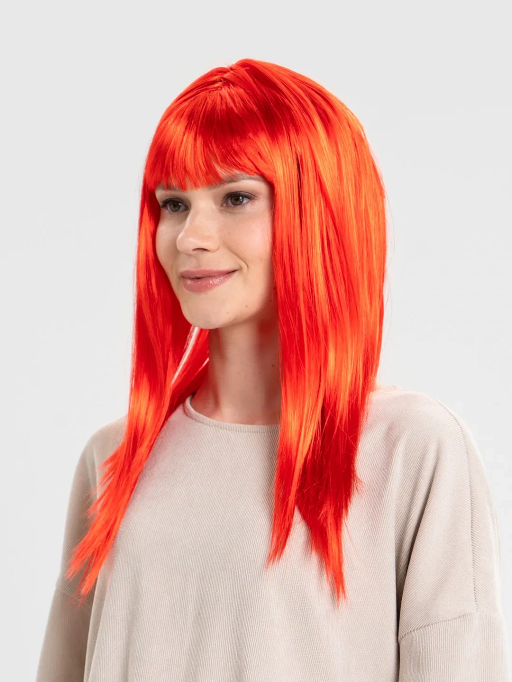 Kırmızı Renk Uzun Düz Parti Peruğu