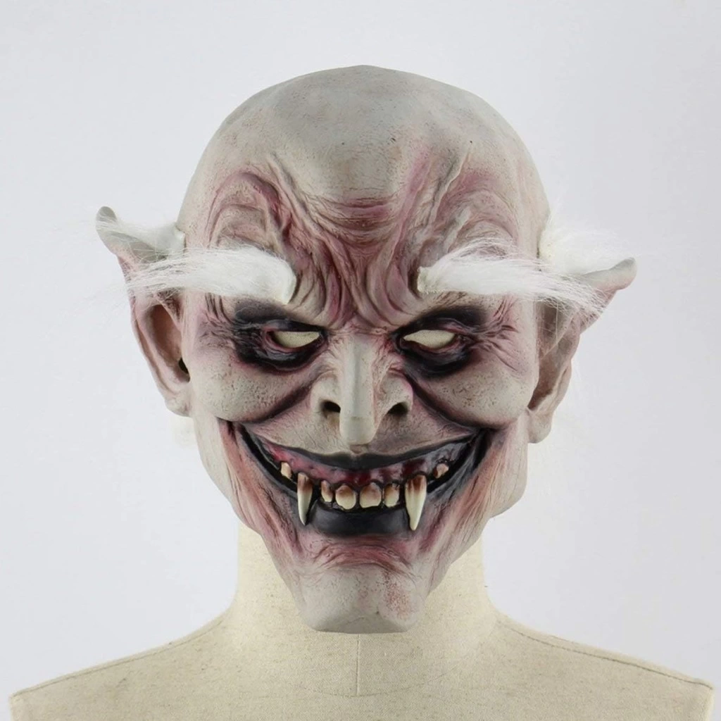 Korkunç Bir Görünüm İçin: Korku Zombi Maskesi Beyaz Saçlı Kaşlı Lateks Vampir Maskesi
