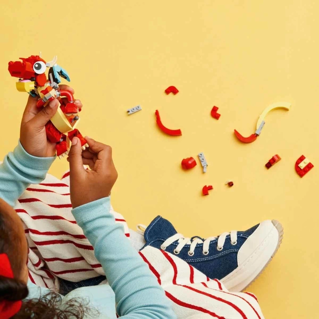 149 parçalı LEGO yapım seti, 12 cm yükseklikte inşa edilebilir bir kırmızı ejderha oyuncağı içerir.