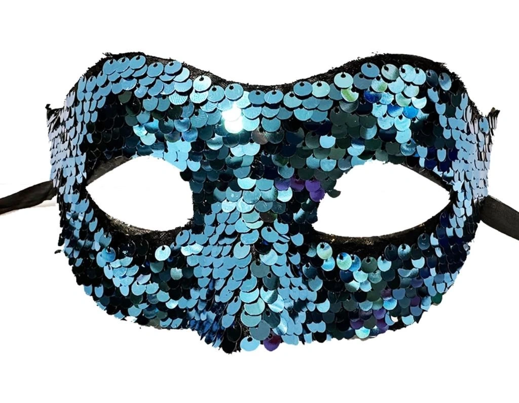 Mavi Renk Payetli Pullu Parti Maskesi Balo Venedik