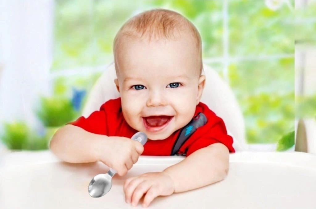 Paslanmaz çatal kaşık seti, bebeklerin kendi kendine yeme alışkanlığı kazanmasına ve yetişkin çatal kaşıkları kullanmasına geçişte yardımcı olur.