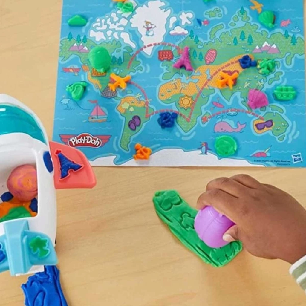 Bu çocuklara yönelik uçak oyuncağının, Play-Doh modelleme bileşiğiyle oynamanın ve dünya çapında kendi maceralarını