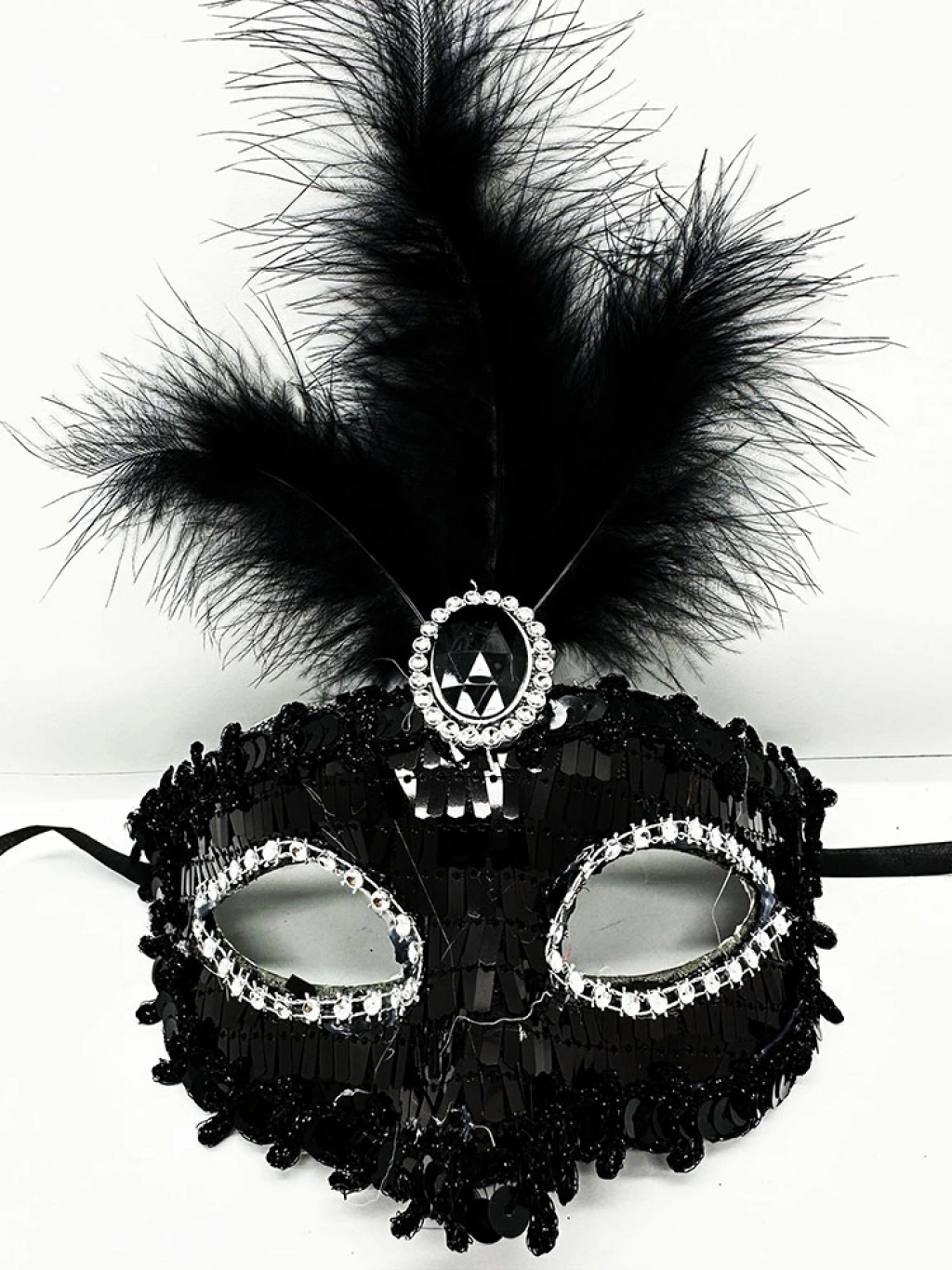 Siyah Renk Payetli Pullu Tüylü Parti Maskesi