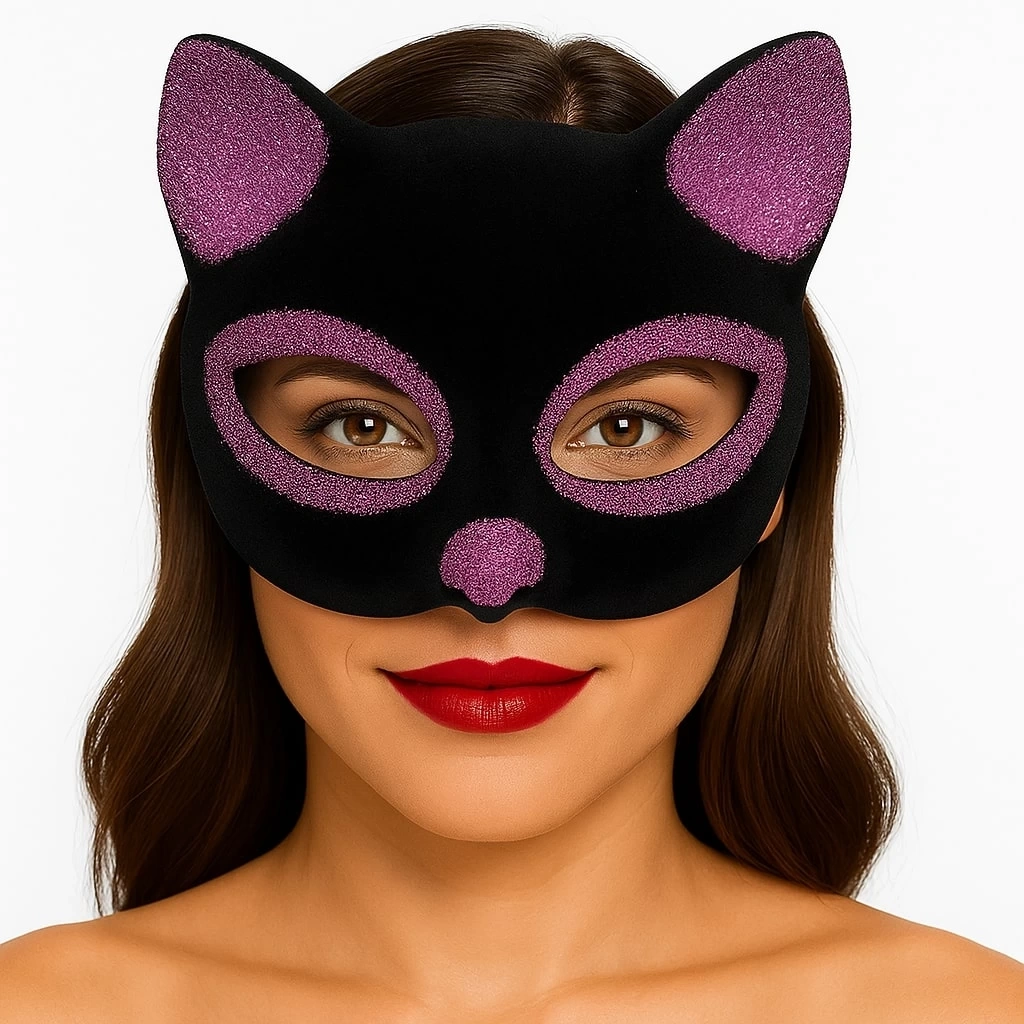 Siyah Renk Pembe Simli Süet Kedi Maskesi ile sevimli ve eğlenceli bir görünüm oluşturun ve özel günlerinizi unutulmaz kılın!