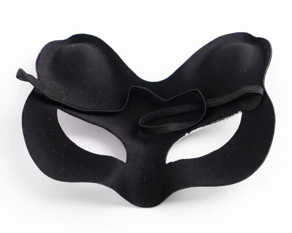 Siyah Renk Üzeri Kırmızı Sarı Simli Süet Kaplama Kedi Maskesi ile gizemli ve etkileyici bir görünüm oluşturun ve Kostüm Partisine hazır olun!