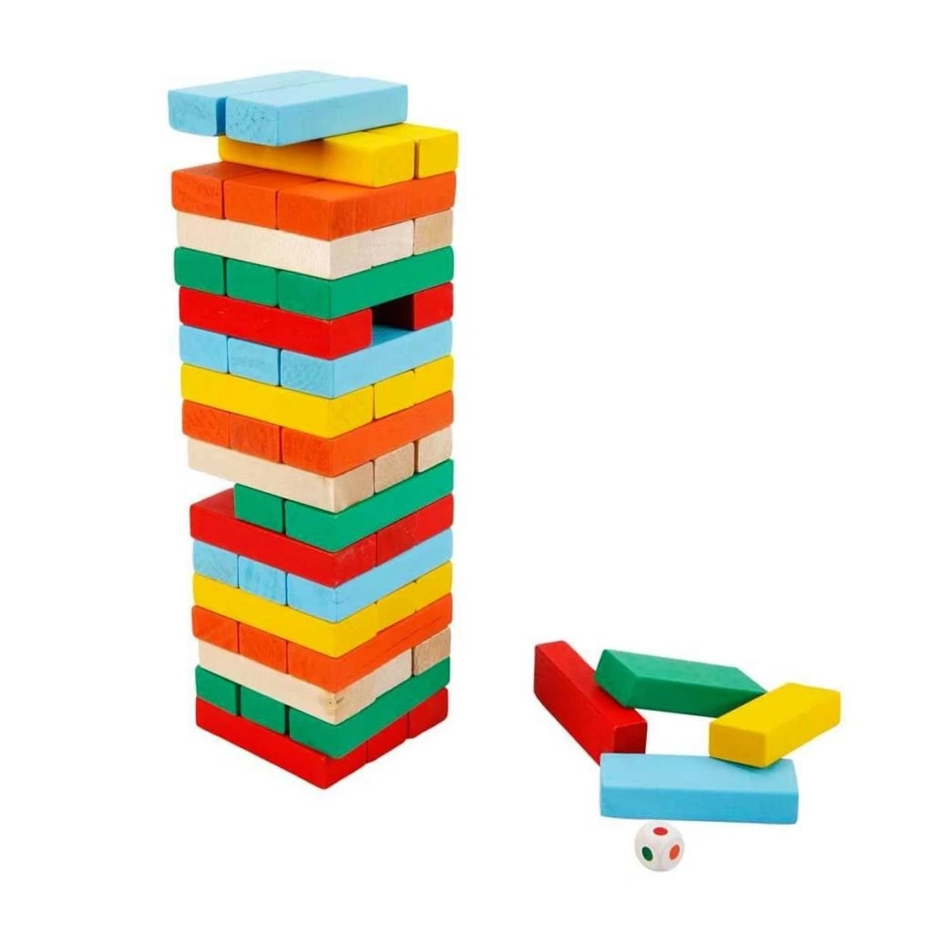 Oyunda amaç tahta blokları çekerek kulenin üstüne koymak, tabii kuleyi devirmeden! Renkli blokları 3’lü sıralar halinde birbirine dik gelecek açılar şeklinde dizin, zarı atın ve oyuna başlayın.